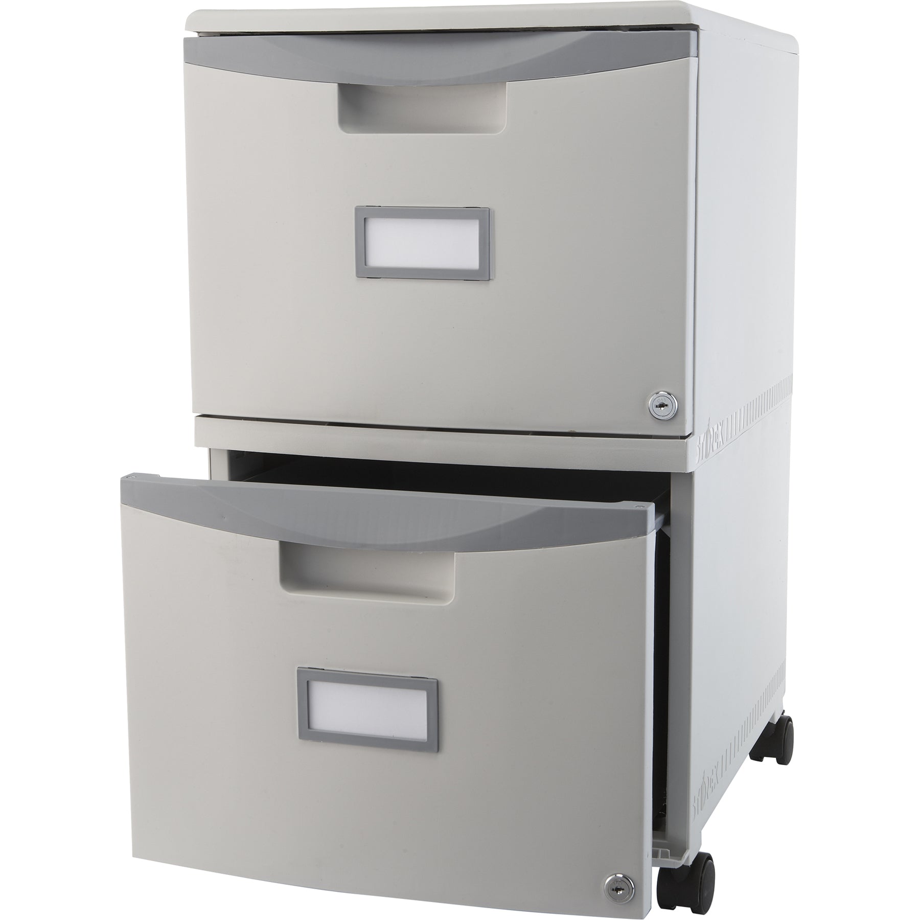 This all-plastic cabinet is an affordable alternative to bulky metal designs. Neatly organize and store your papers, documents and folders away for later use. Compact and light, this cabinet is easily moved from room to room or up and down stairs. With its low profile, this cabinet fits under desks, in closets, or tucked away in a corner. Combine units and stack up to six drawers high for even more storage potential. Measures 26"H x 14.75"W x 18.25"D.