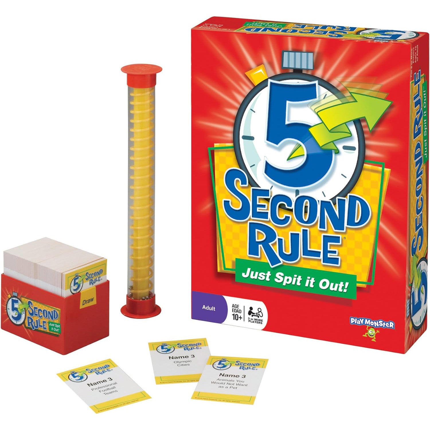 Enjoy the family-favorite 5 Second Rule, now with all-new content! Draw a card like: Name 3 Magic Words. Sounds easy—but can you do it under the pressure of 5 seconds twisting down, and with the other players staring at you, waiting for you to get flustered? Time’s not on your side, so just say what comes to mind and risk ridiculous answers slipping out! It’s all in good fun with this fast-paced game where you have to Just Spit it Out!™ For 3 or more players.