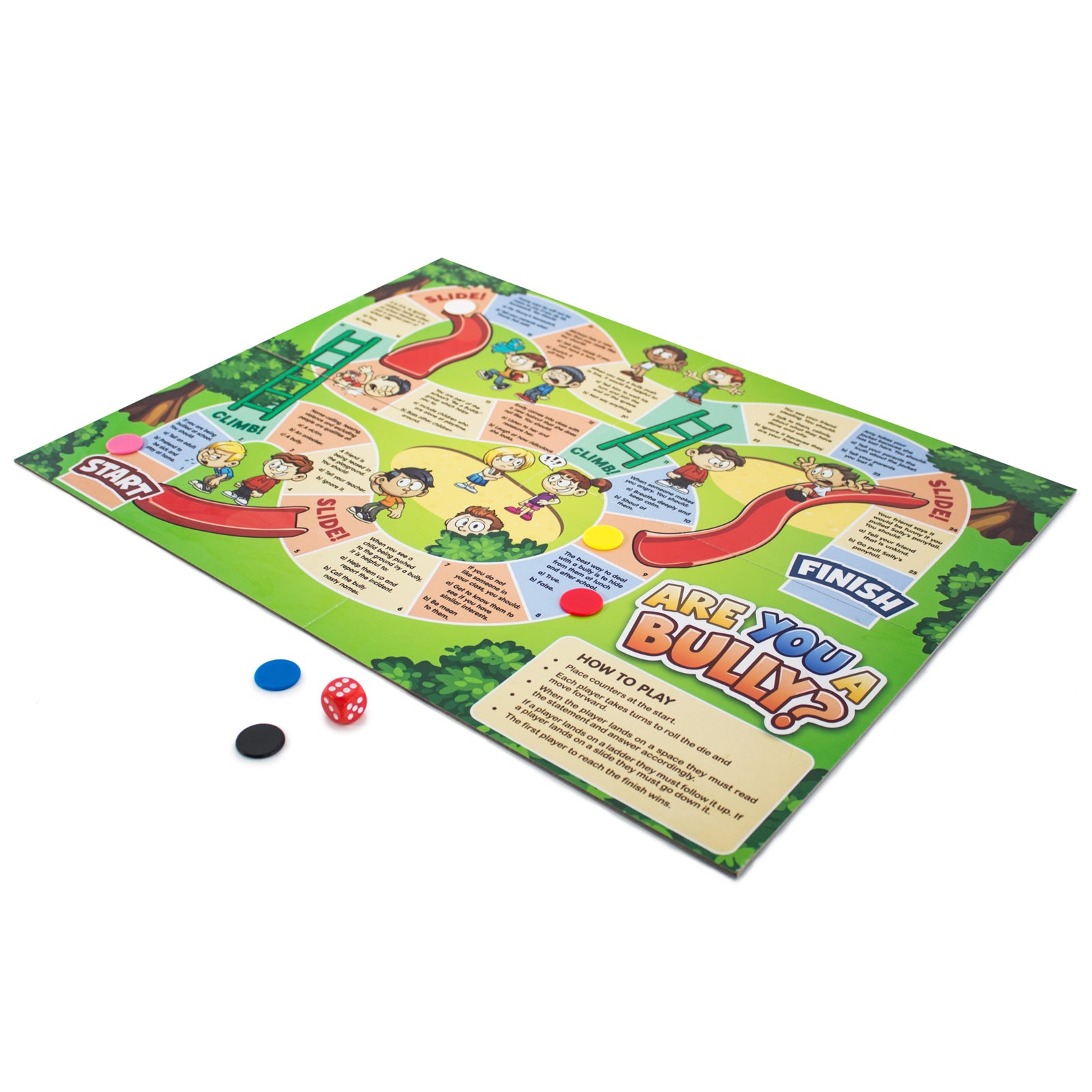 Children often encounter differences with others, but how easy are these differences to resolve? 6 Conflict and Resolution games is a unique set of games that focuses on how to recognize conflict, how to handle it and how to resolve differences in a more positive solution focused way. Each game and activity is vibrant and uses a number of different game plays to teach children about common conflict situation, how to recognize different emotional triggers, and how to understand and apply different conflict resolution techniques. Contains 2 board games, 1 matching game, 1 counter game, 1 thermometer, 20 puzzle pieces, counters spinner, and die. Ages 6+.