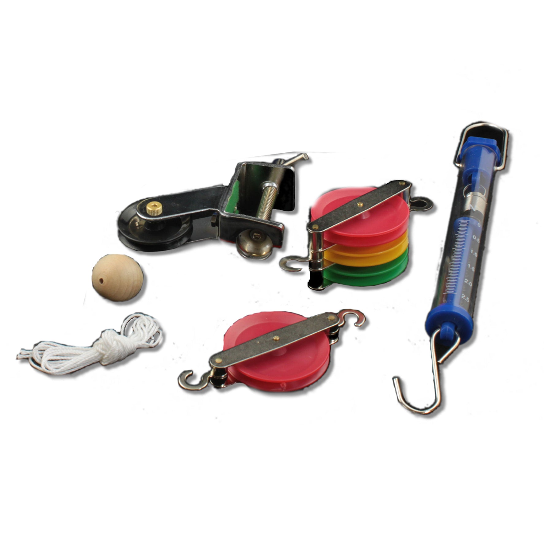 iii : Includes: Stop Watch, Tape Measure, Single Pulley, Double Pulley, Table Clamp Pulley, Spring Scale, Wooden Ball, 1.75" Steel Ball, 1" Steel Ball, Hall's Carriage, Weight Set, String, and Activity Guide