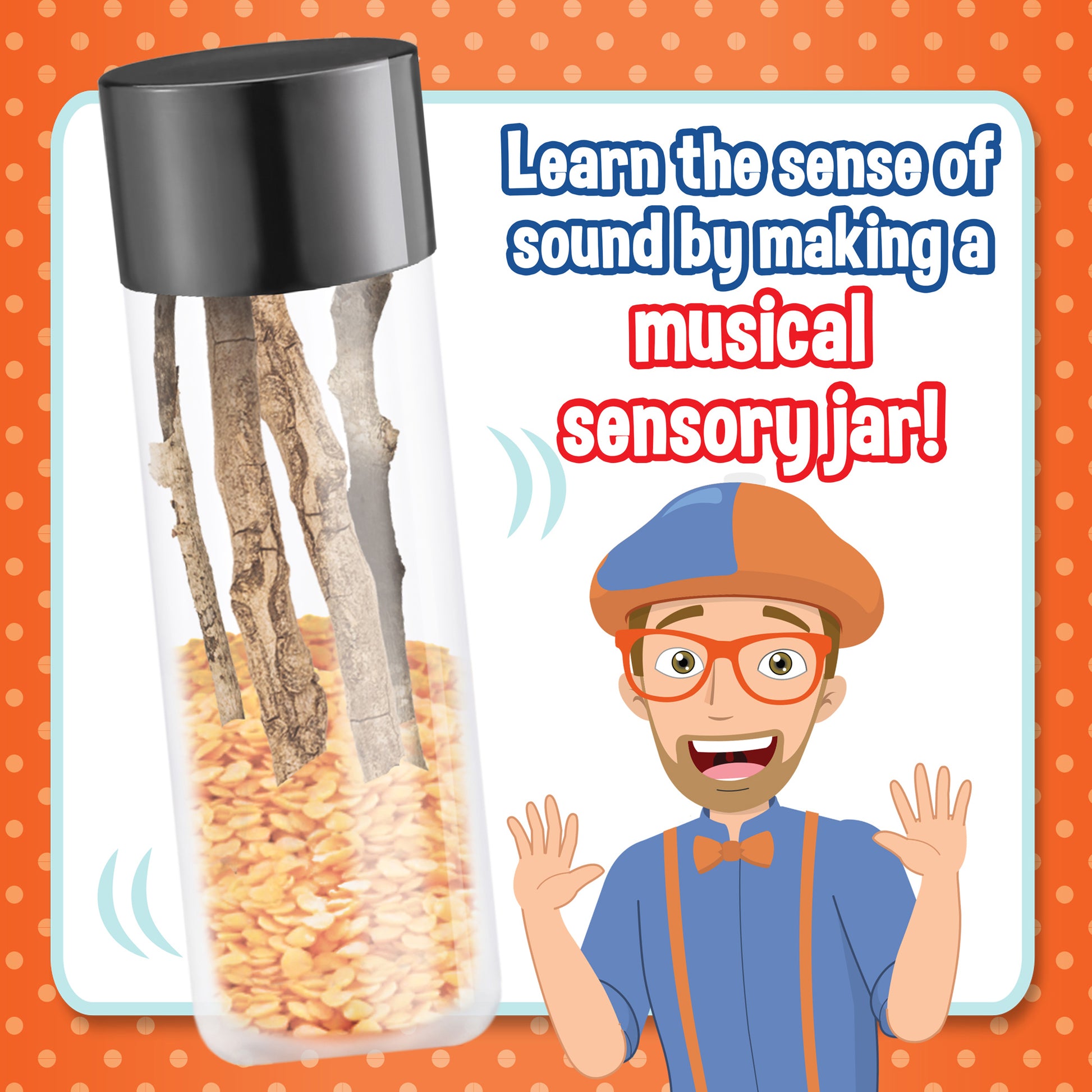 Give kids an endlessly entertaining science kit that will help them appreciate their 5 senses. They'll learn how each sense is used and will better understand their surroundings. Kids love to learn and are always looking for ways to experiment. Provide them with the perfect starter kit to get them going on their learning journey. They will get to blind taste random foods, play with and smell secret scented dough, roll textured balls on dough to create many patterns, create a musical sound stick and find Blippi with their very own magnifier. Sensory adventure awaits!