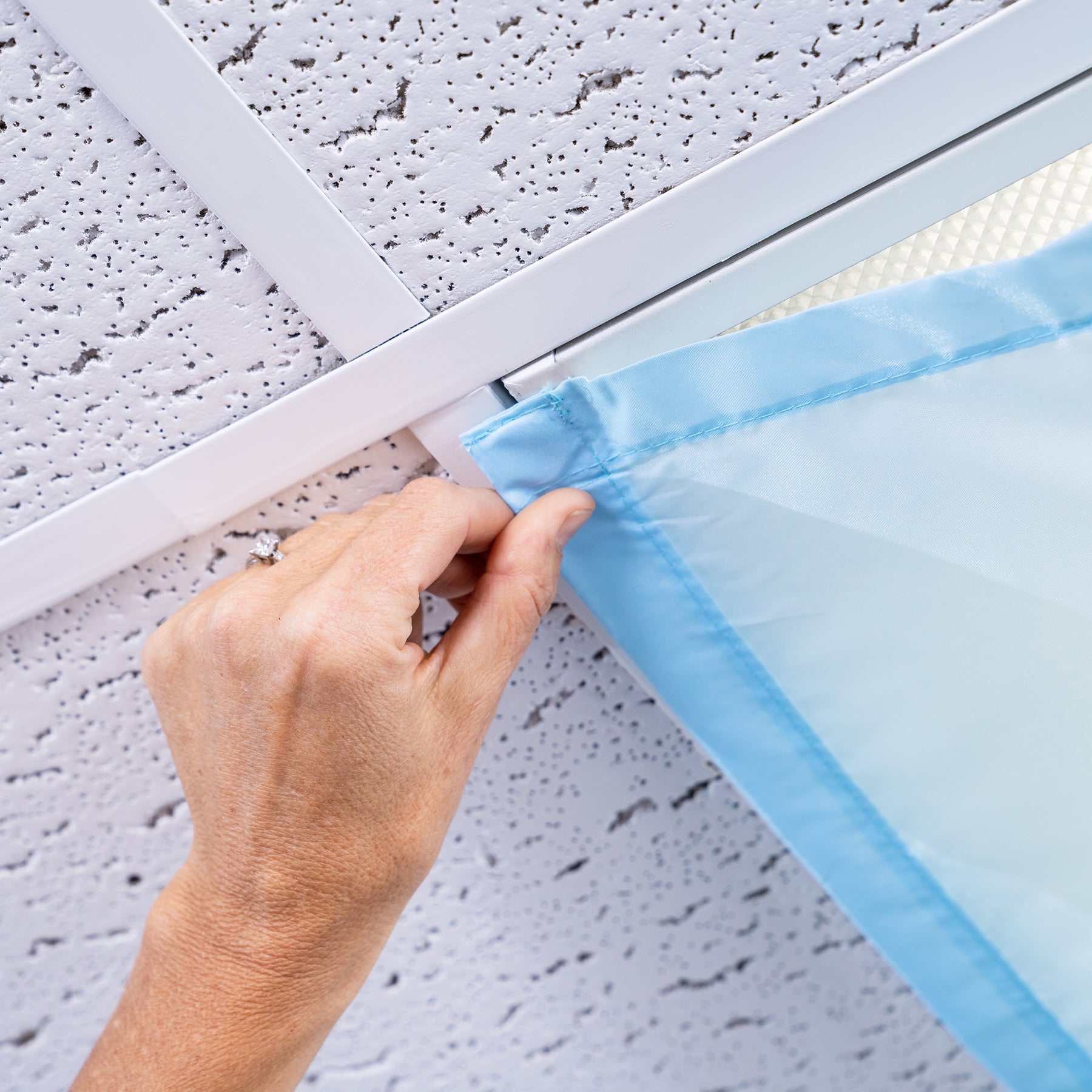 Fluorescent and LED lights are staples in many classrooms and offices, but their harsh glare and flickering light can cause eyestrain, headaches, and anxiety. Cover your lights with these fabric panels and create a calm and soothing environment perfect for focusing and concentrating! Calming Clouds Light Filters attach easily over standard ceiling fixtures with six sturdy, sewn-in magnets. Each set includes four 2' x 4' heat-resistant panels with four different cloud patterns in soothing shades of blue and soft white. For use with fluorescent and LED lights only.