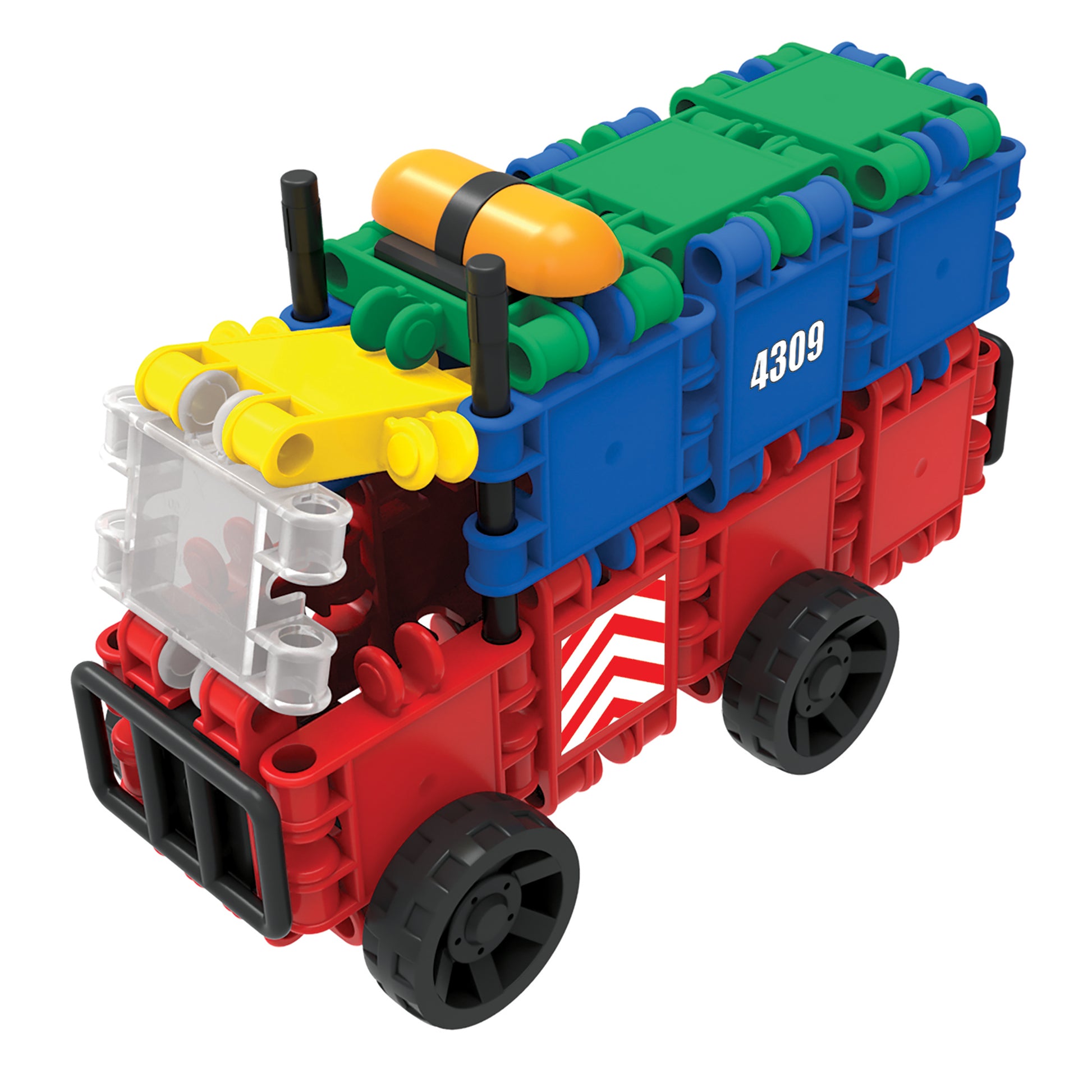 Clics is the great construction line from Belgium. Easy to use - just click the pieces together. Allows kids to make large constructions quickly. Creations are sturdy enough to play with when they are done, making Clics great for imaginative play as well as creative constructing. Clics is great for developing fine motor skills, spatial reasoning, and imagination. One of the only construction toys that allows for building wearable creations. A great starter set: discover the fun of playing with Clics with this bucket 8 in 1.