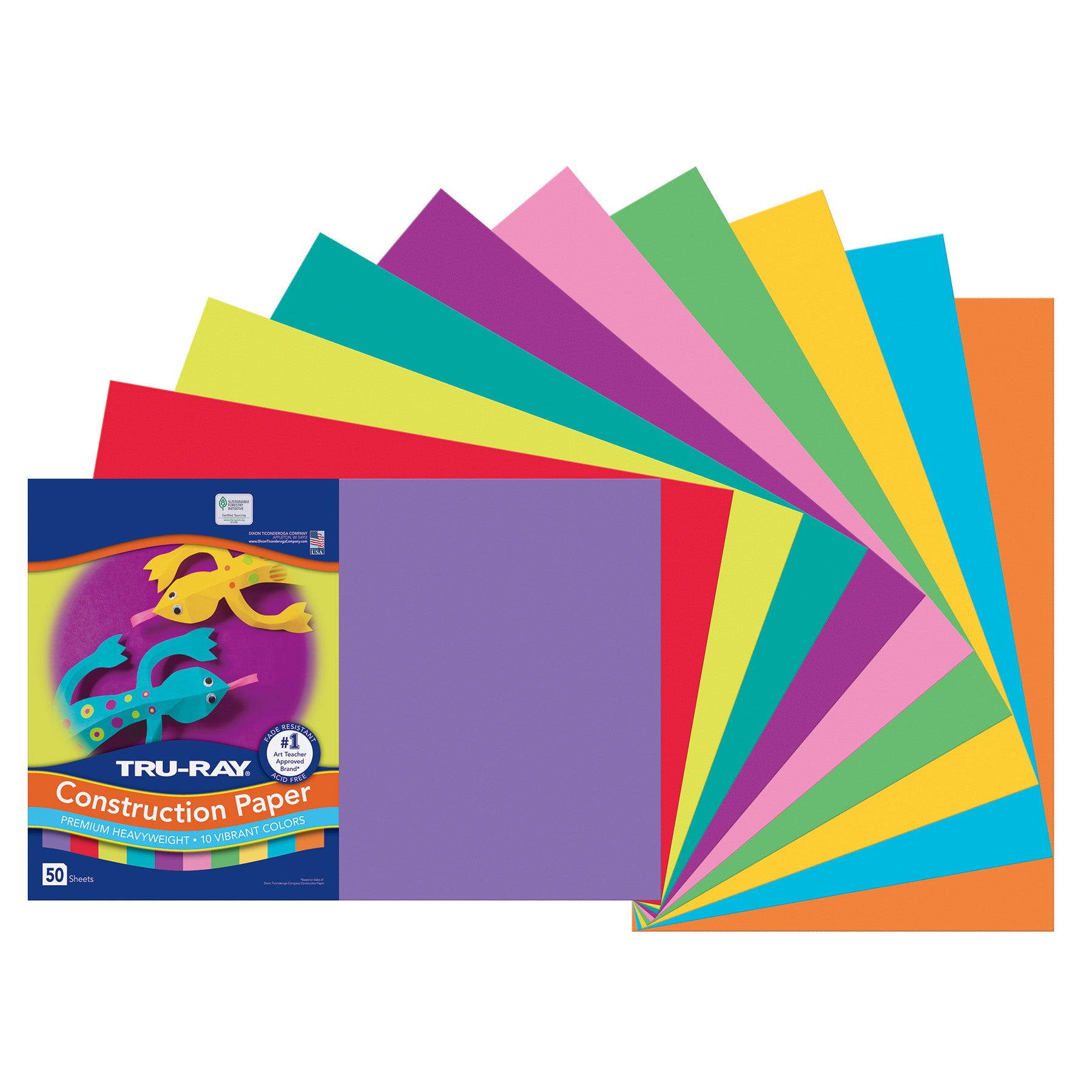 Heavyweight 100% vat-dyed sulphite with longer, stronger fibers. Tru-Ray® Construction Paper is tough enough to take scoring, folding and curling without cracking and tearing. Its superior fade-resistance keeps projects brighter and fresher longer colors. Colors include: Magenta, Festive Green, Turquoise, Brilliant Lime, Violet, Atomic Blue, Shocking Pink, Pumpkin, Gold and Festive Red. Acid-free for less fade. 50% recycled fiber content and recyclable. Each pack includes 50 sheets. Sold as 3 packs for a total of 150 sheets.