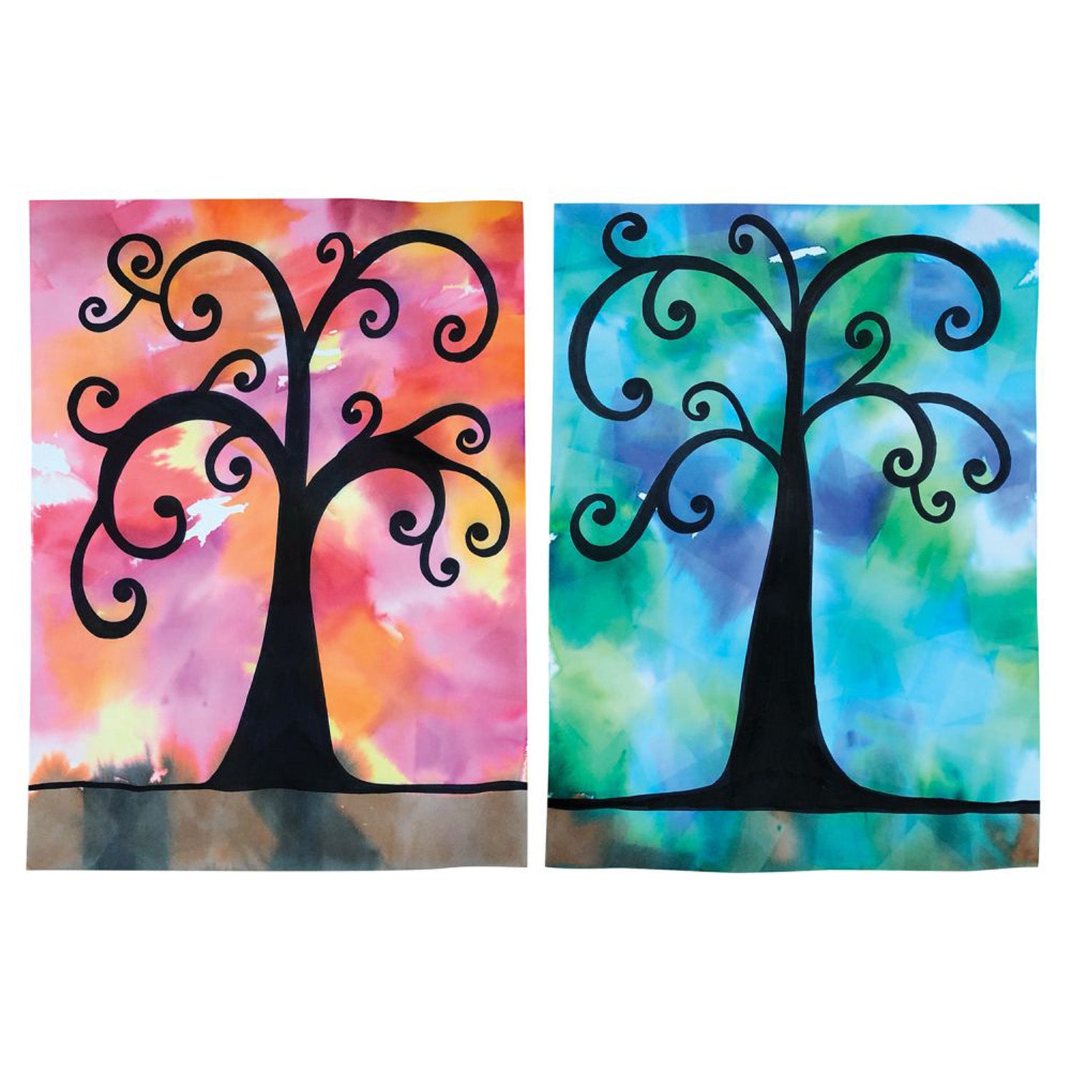 You can paint with Spectra® Deluxe Bleeding Art Tissue! Wet with a brush and wash beautiful, translucent color onto the paper. Overlap two colors and watch them blend. Or, add glue to the water to hold specific shapes in place and create magnificent, multi-layered effects. The Bleeding Tissue Squares are available in 25 assorted colors, including Cerise, National Blue, Chinese Red, Blush Pink, French Blue, Spring Green, Dark Pink, Scarlet, Magenta, Sky Blue, Leaf Green, Canary, National Red, Orchid, Azure Blue, Seal Brown, Goldenrod, Purple, Emerald Green, Black, Orange, Baby Pink, Medium Blue, Apple Green and White. This high-quality tissue can withstand cutting, crinkling and folding without tearing. The expansive variety of colors in this convenient pre-cut format aligns very well to the consumer’s and teacher’s desire for convenient, time-saving solutions!