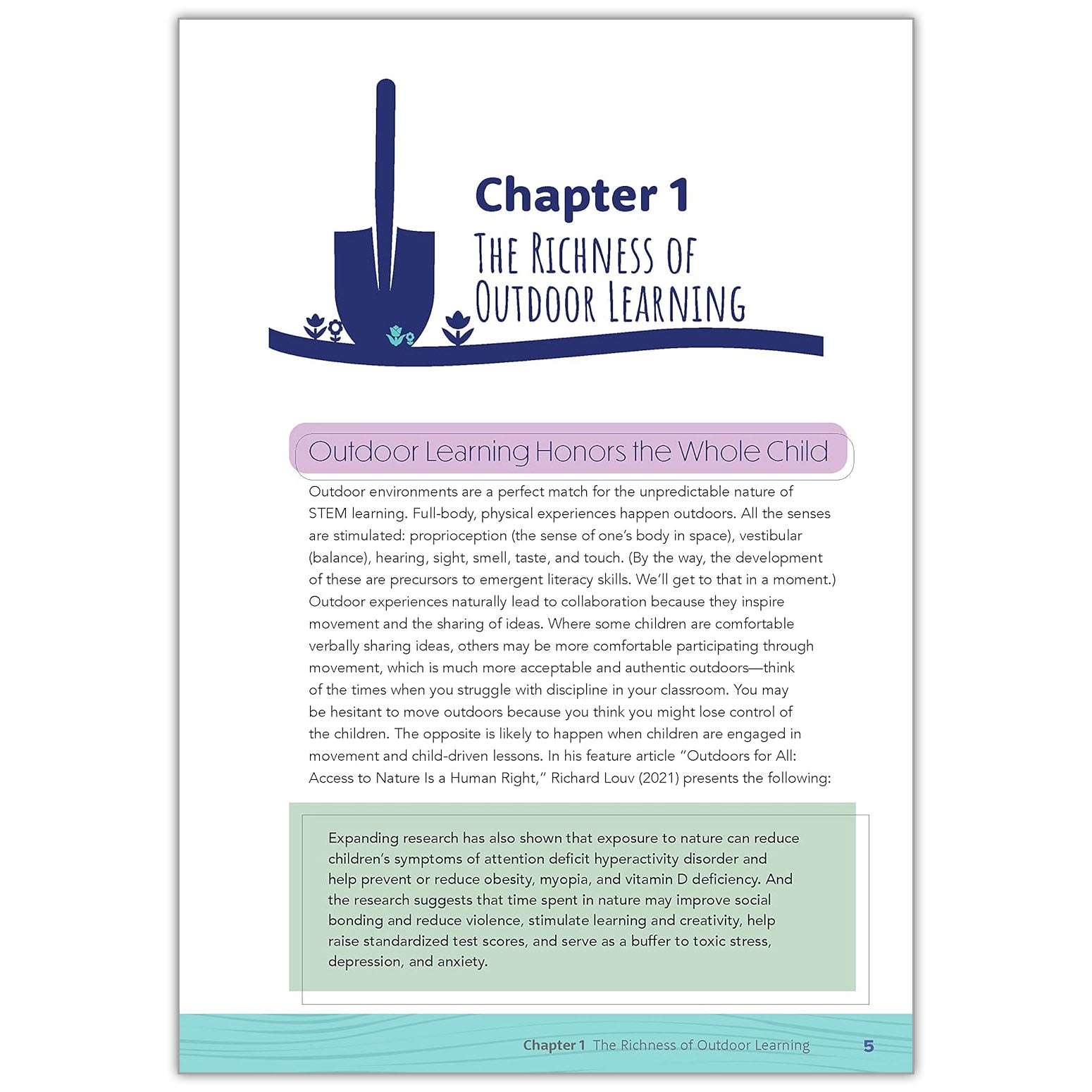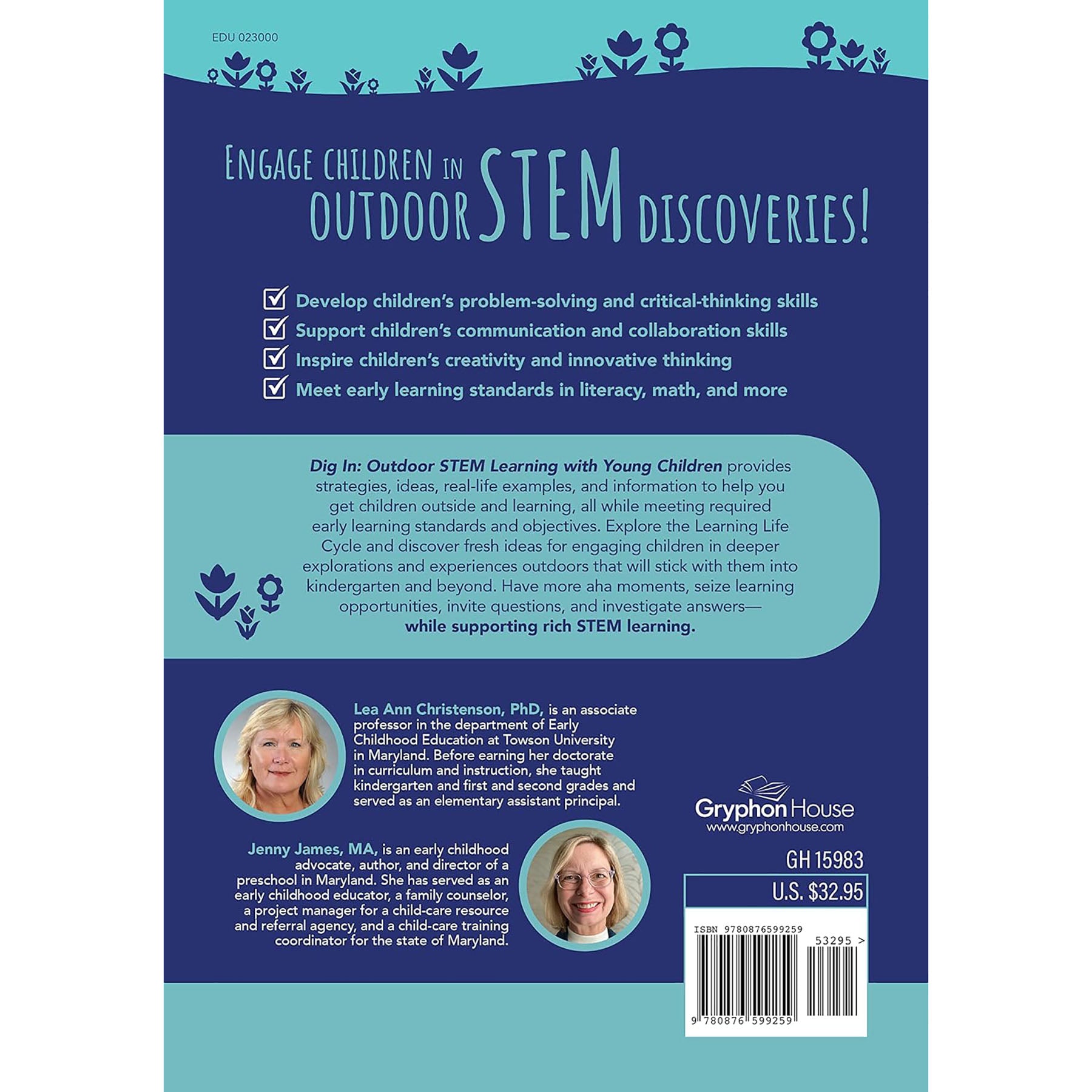 Dig In: Outdoor STEM Learning with Young Children provides strategies, ideas, real-life examples, and information to help you get children outside and learning, all while meeting required early learning standards and objectives. Explore the Learning Life Cycle and discover fresh ideas for engaging children in deeper explorations and experiences outdoors that will stick with them into kindergarten and beyond. Have more aha moments, seize learning opportunities, invite questions, and investigate answers—while supporting rich STEM learning.