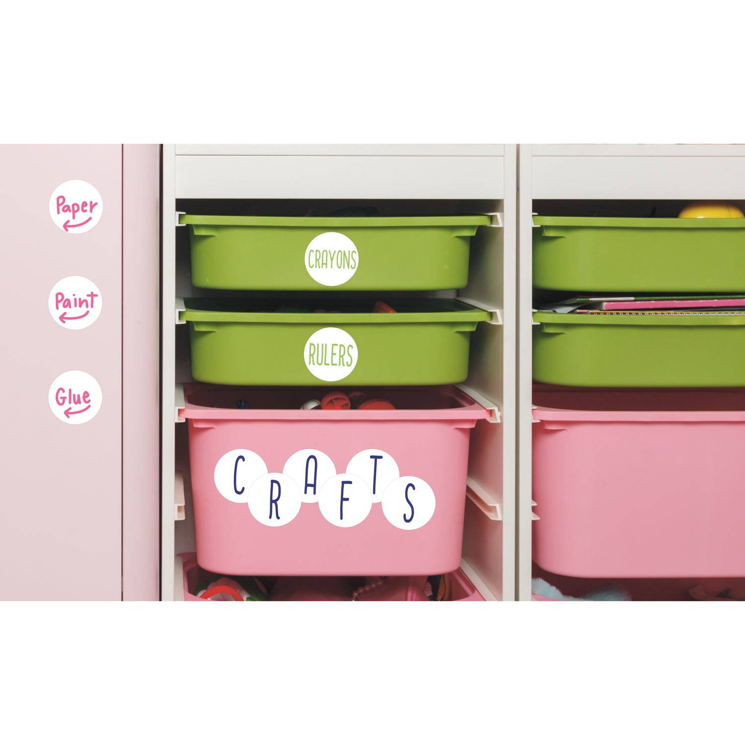 Enjoy decorating your walls with our wide variety of peel and stick, vinyl-coated decals to suit whatever taste or theme you like. Wallies are a fast and easy way to decorate a child’s room, home office, kitchen or just about anywhere you want to add a little interest to your walls! Wallies are a great alternative to decorating with paint or stencils. And because Wallies are removable and repositionable, they aren’t permanent like paint is so you can change your room's décor in seconds. In just a few minutes, you can really update your surroundings. Includes 24 dry erase dot labels (2.75").