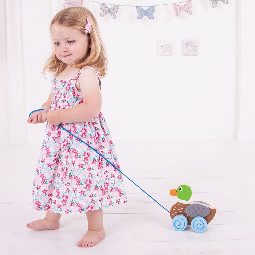 This classic wooden toy features moving wings and colorful offset wheels for lots of wobbly pull-along fun. Our Wooden Pull Along Duck is crafted from high quality, responsibly sourced materials painted with child-friendly paints.