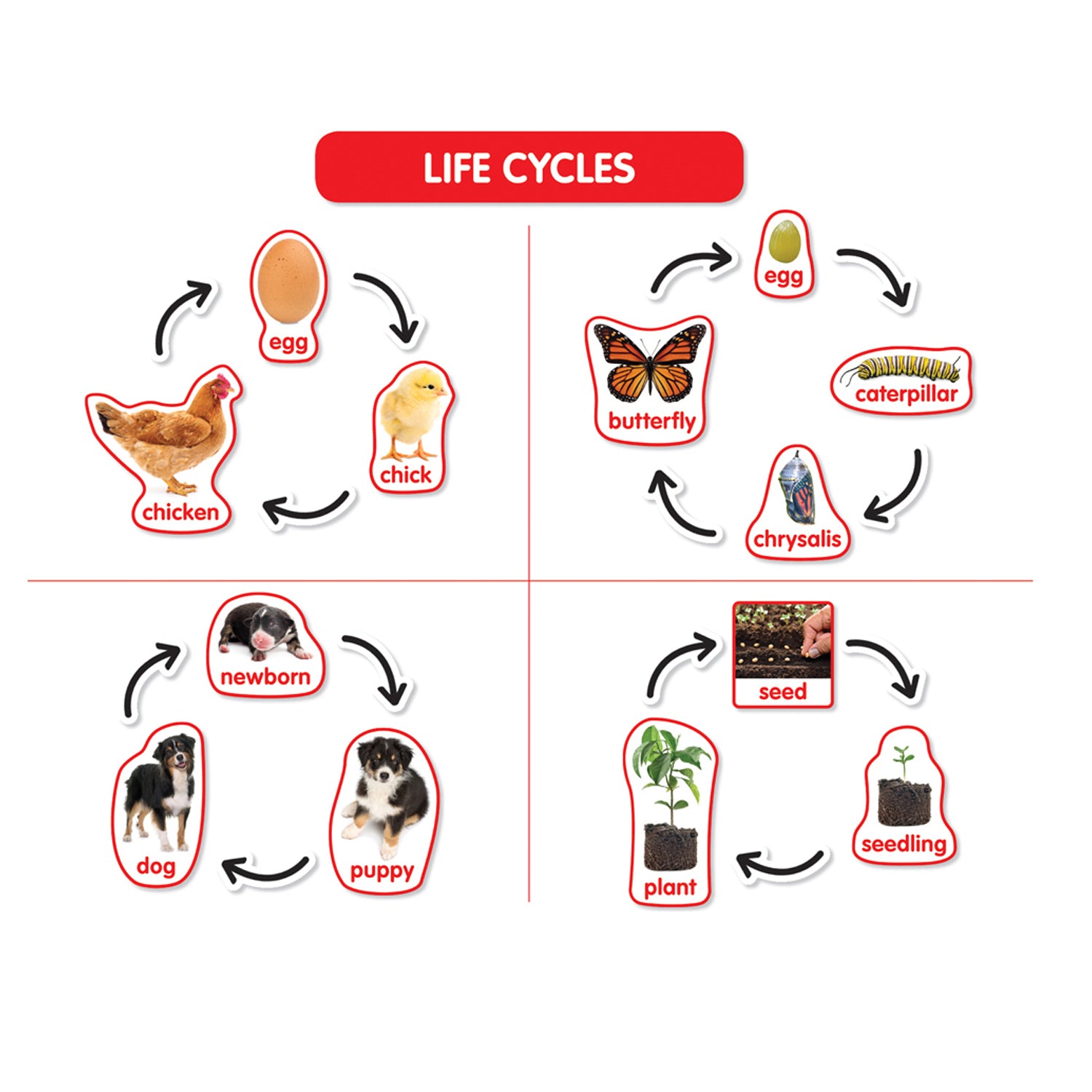 • Topics: Life Cycles (chicken, butterfly, dog, plant); Parts of a Plant; The Water Cycle; Phases of the Moon; Light & Sound