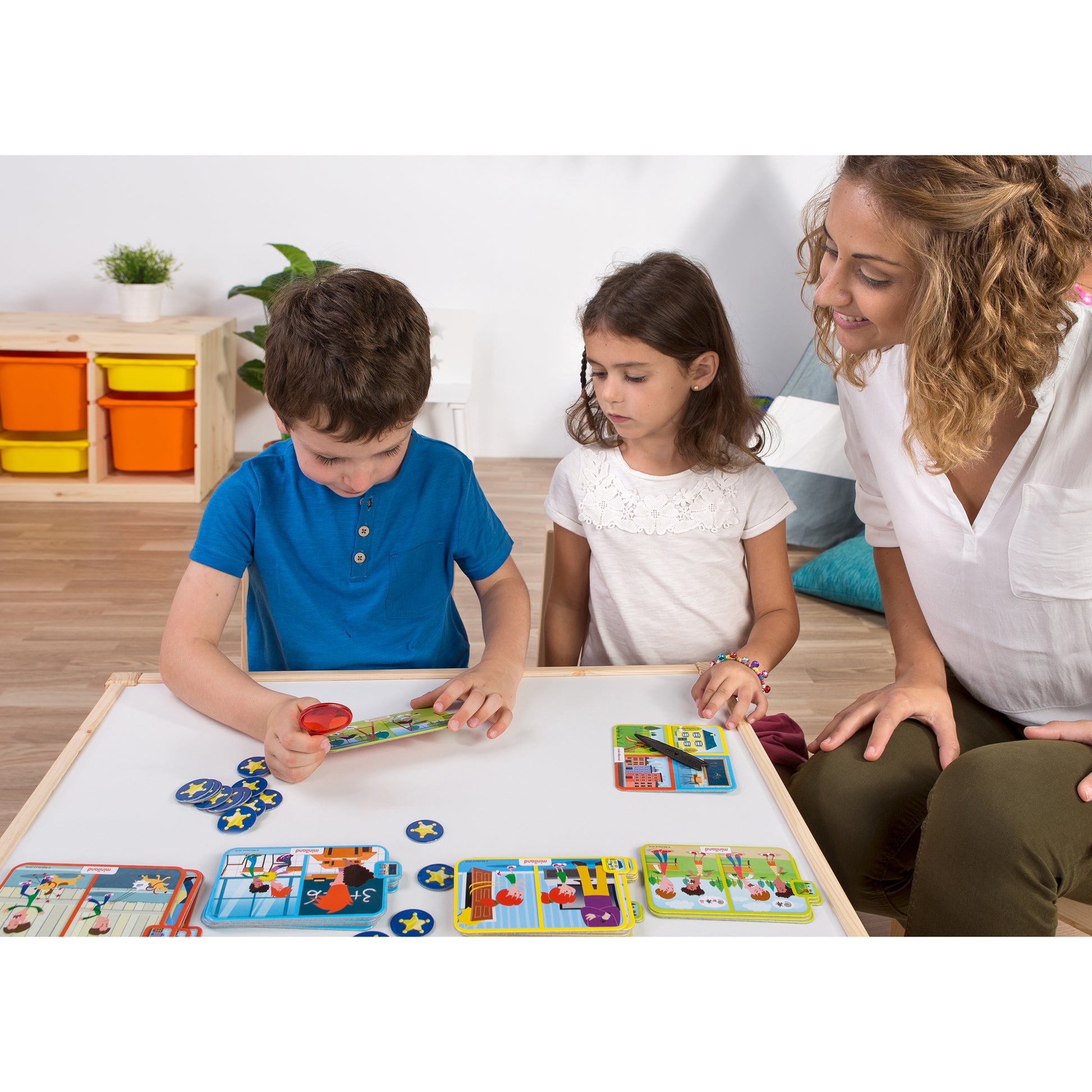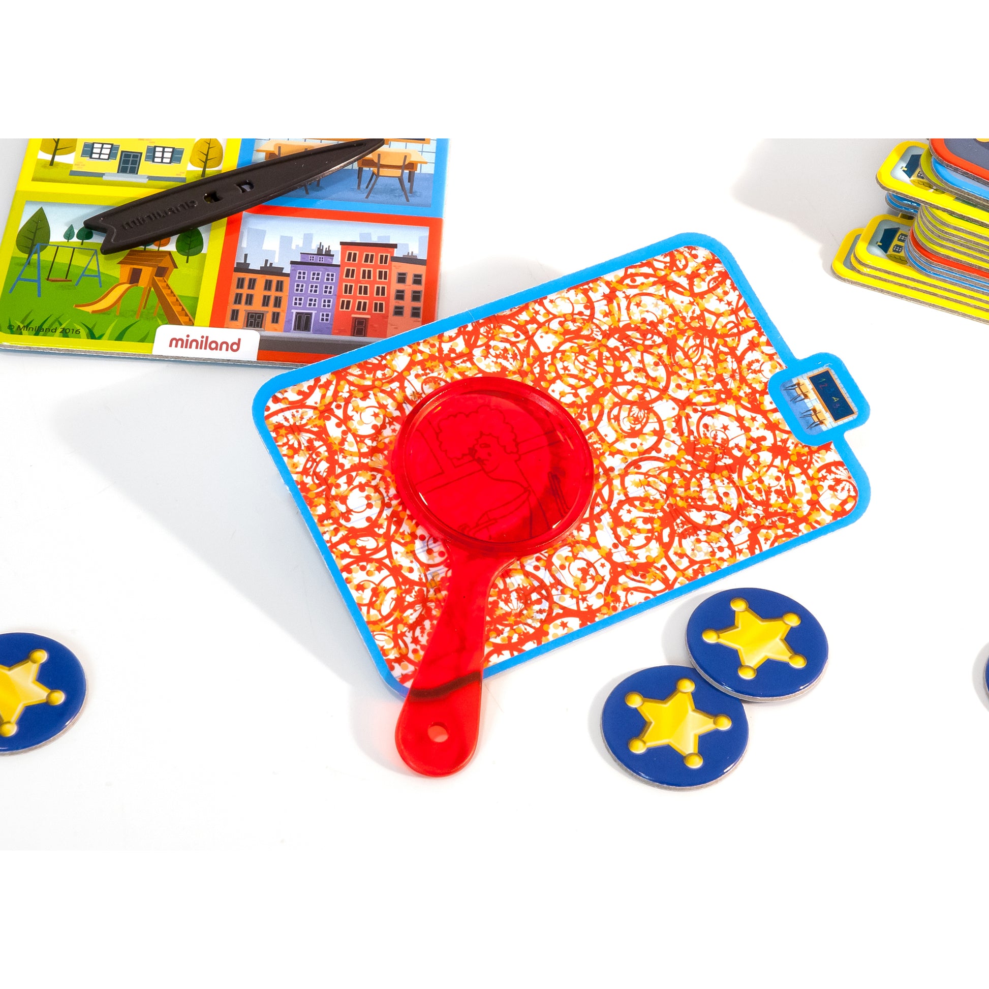 A cooperative game with which participants will discover how to control their moods. It includes cards that conceal an everyday action and provoke anger or sadness. The little detectives will have to find out what it's all about to then come up with solutions that lead to a positive feeling. SEL (social and emotional learning) classroom resource. Includes 24 cards, 18 stars, 1 roulette, 4 magnifiers and 1 brochure. For 3-6 years.