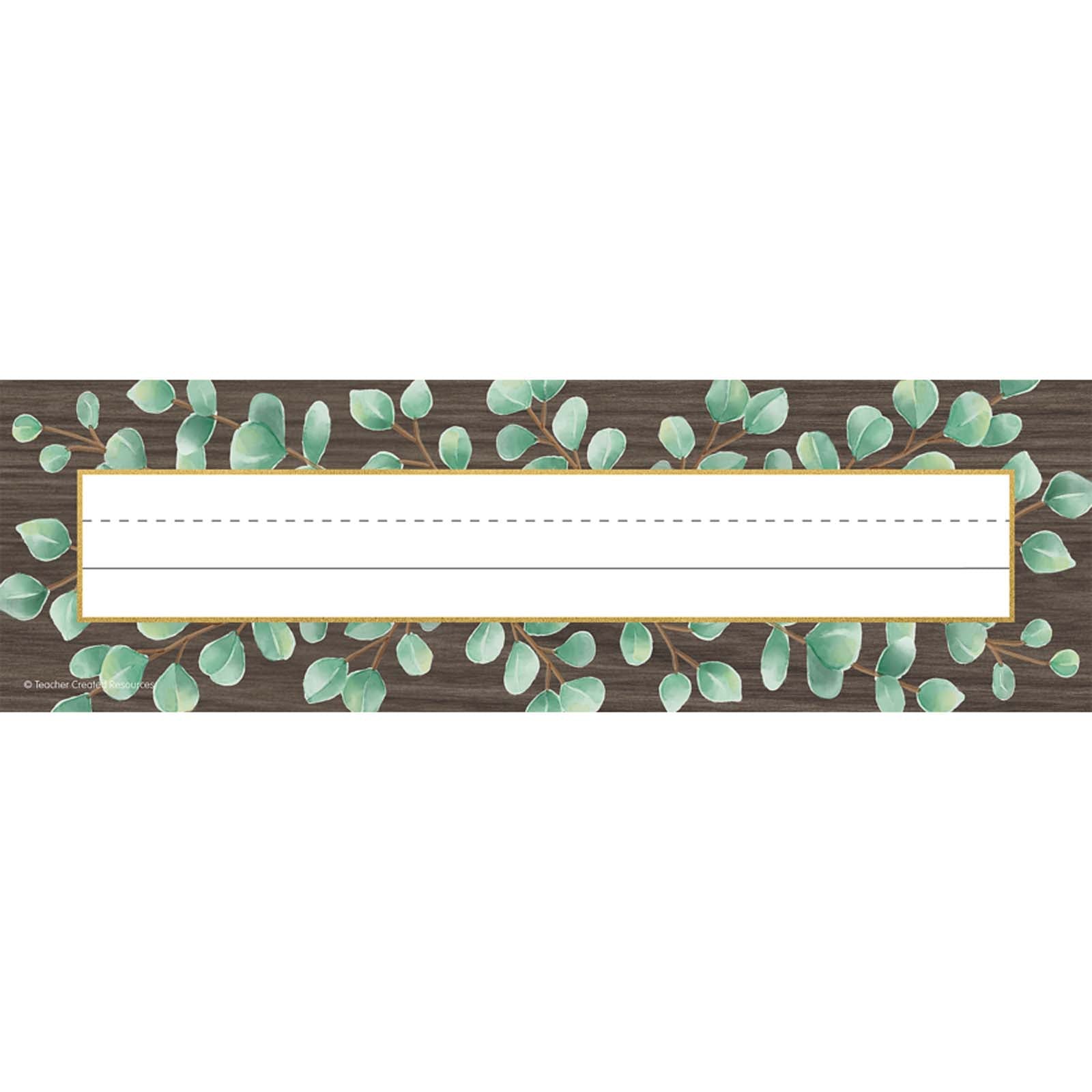 Children love to have a place especially for them. The soft greenery against the dark wood design is sure to be a favorite in any classroom. Label desks, learning centers, portfolios, materials, and more! Name plates measure 11-1/2" x 3-1/2". Each pack includes 36 nameplates. Sold as 6 packs for a total of 216 nameplates.