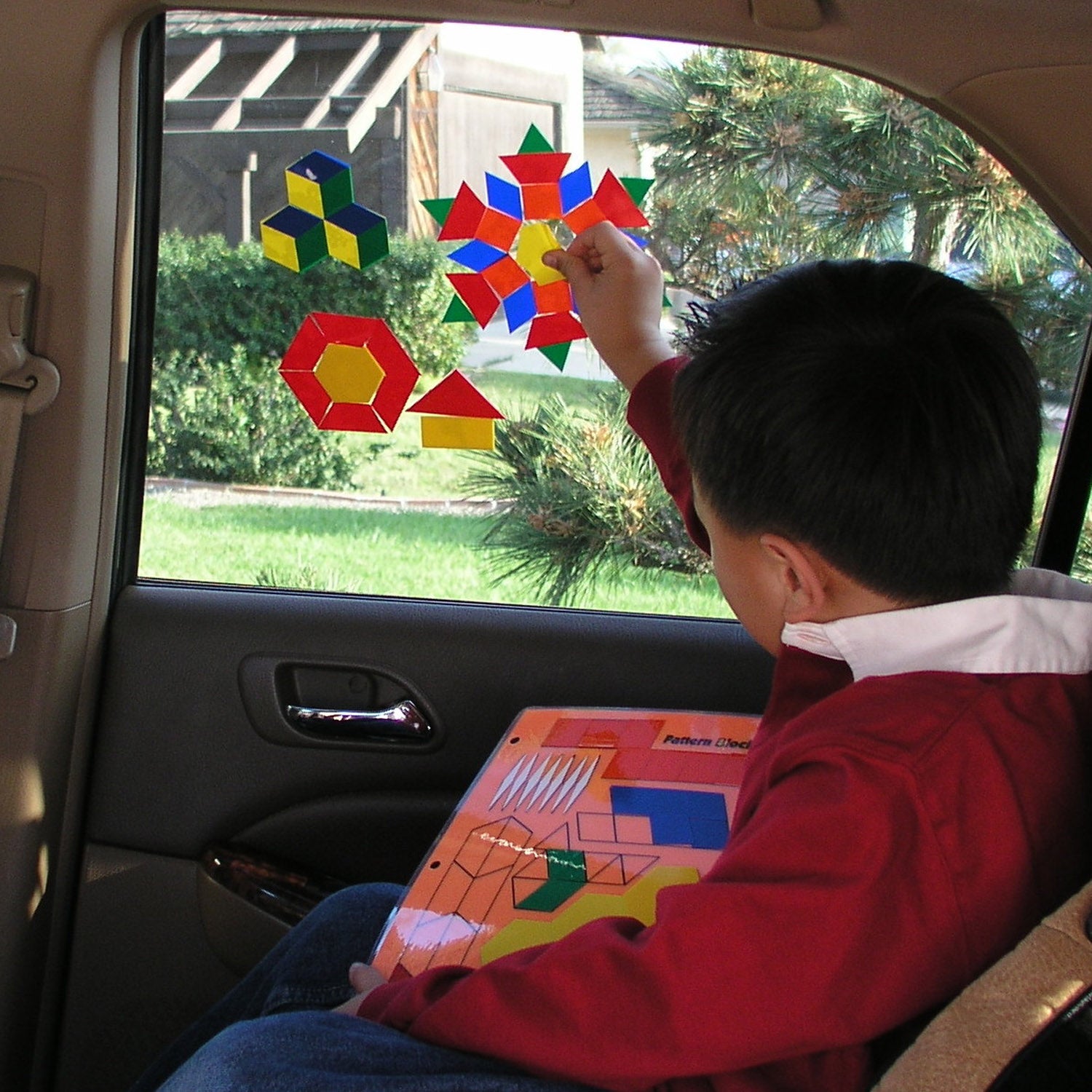 i : Shapes stick to clean, glossy surfaces: laminated paper, whiteboards, windows, and more