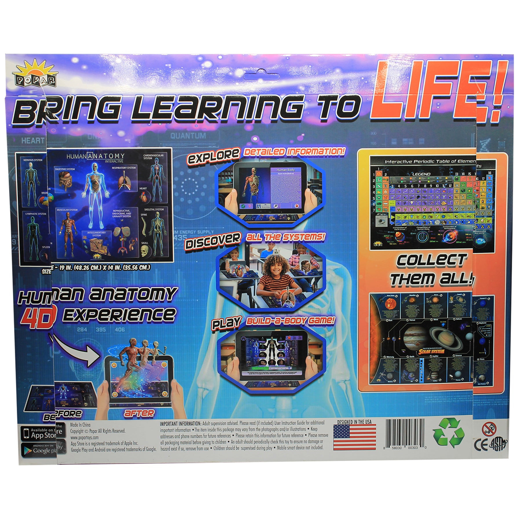 Popar brings the human anatomy to life through its interactive Augmented and Virtual Reality infused smart mats. This package includes 4 X Human Anatomy smart mats. Each smart mat allows the user to install the included bonus app on 5 different mobile smart devices. If you are a school, please look at our "Educational Packages" that have unlimited licenses. Connect and play with the all the bodily systems through stunning animations, thought provoking game, educational read-alongs, and so much more! All Popar smart mats are designed with these key features to support and help your child enhance creative perception, learn about spatial and temporal concepts, and build listening comprehension. Measures 19"W x 14"H.