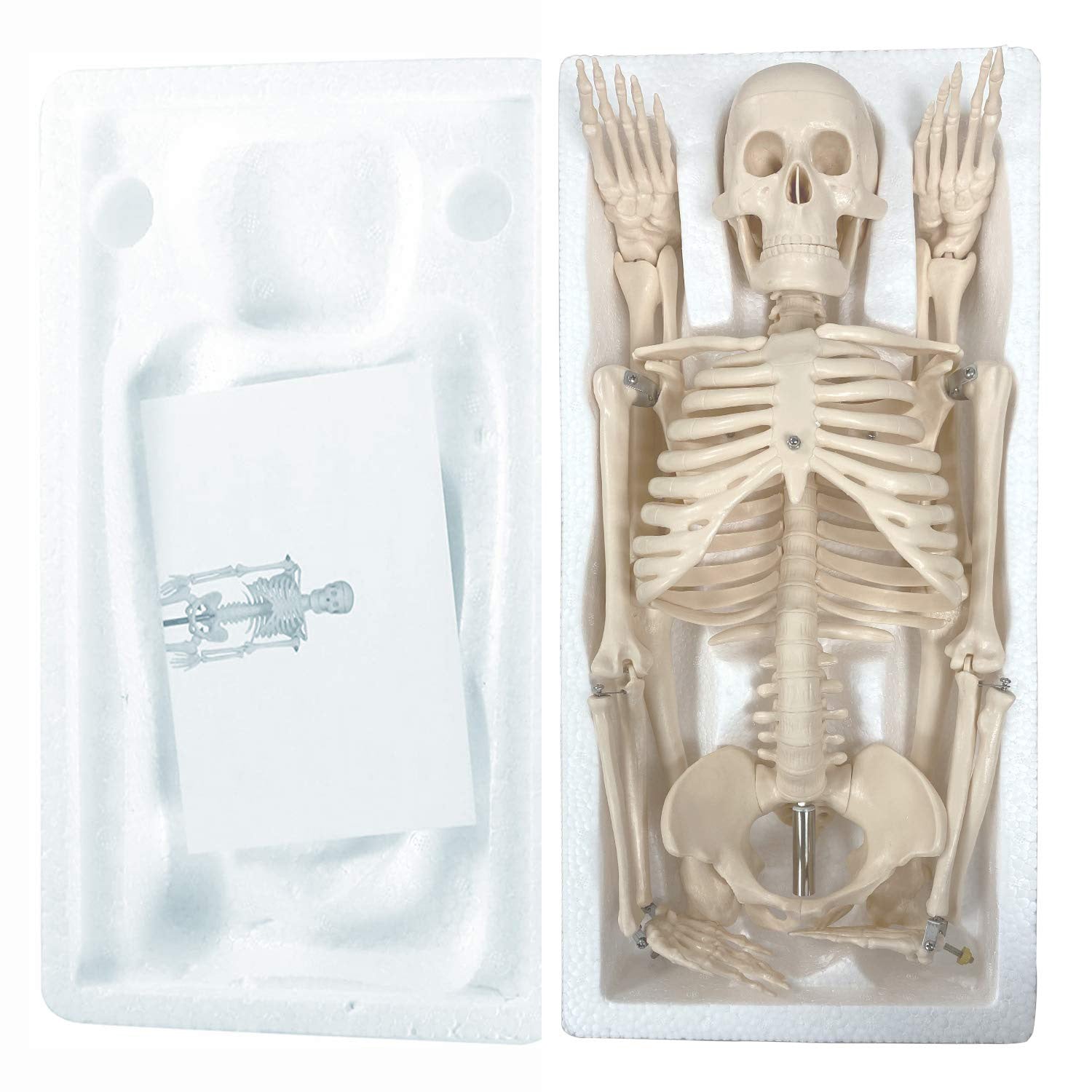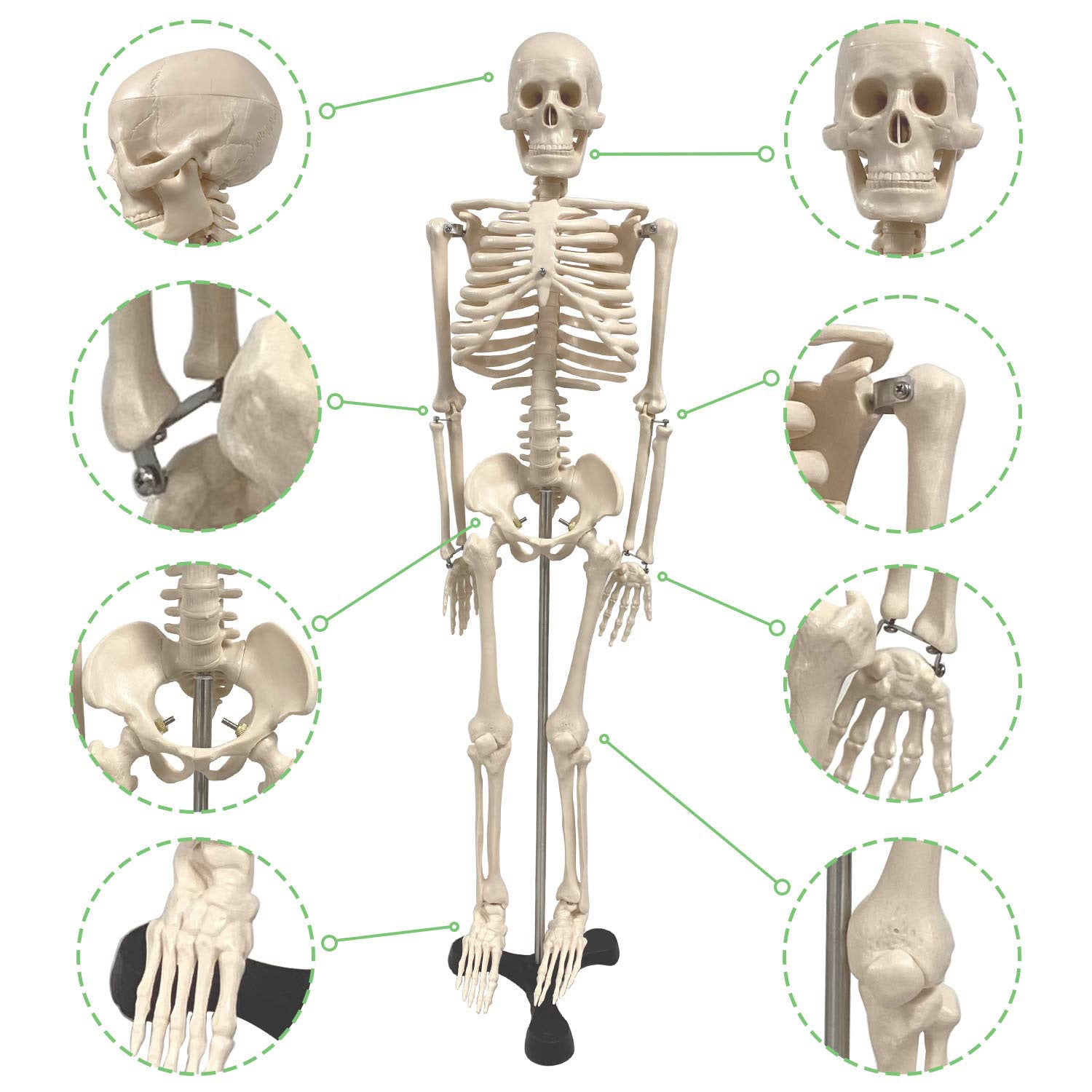 Demonstrate basic anatomical features of the human skeleton using this 34" excellent Skeleton Model. The skeleton has natural movement of the joints with the exception of fused carpals and tarsals. Constructed of rugged plastic with a heavy metal base for an extra measure of stability. Features include unbreakable ribs, stainless steel screws, brackets and springs to resist corrosion. Comes with a detailed key. Ages 7+.