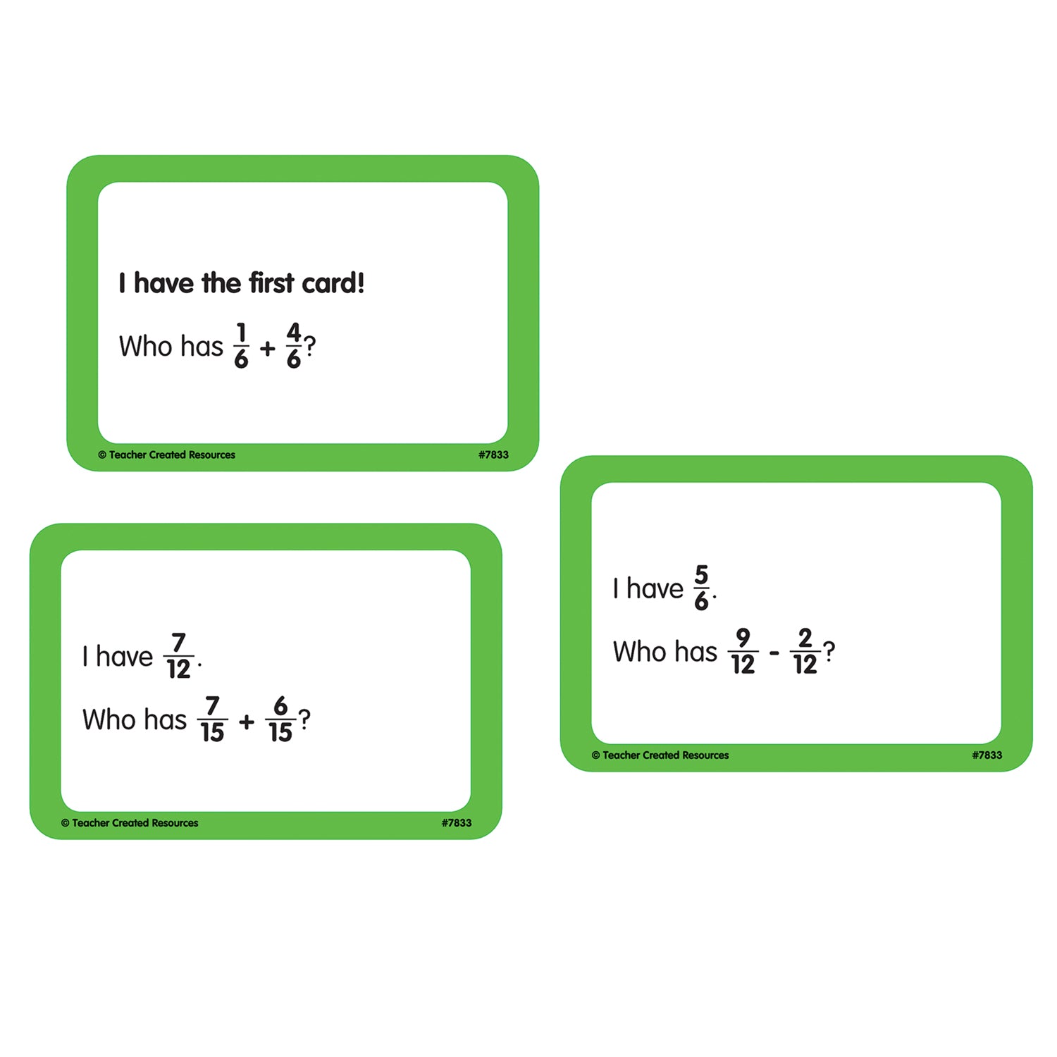 The entire class can have fun while practicing skills in language arts and math. Hand out all 37 cards. (Some players may get more than one card.) The student whose card reads, "I have the first card. Who has...?" begins. The student whose card has the answer to that question responds and then asks a different question. This continues until the person with the last card gives the final answer and then reads, "This is the end of the game!" Each box provides 4 sets of cards for 4 different games.
