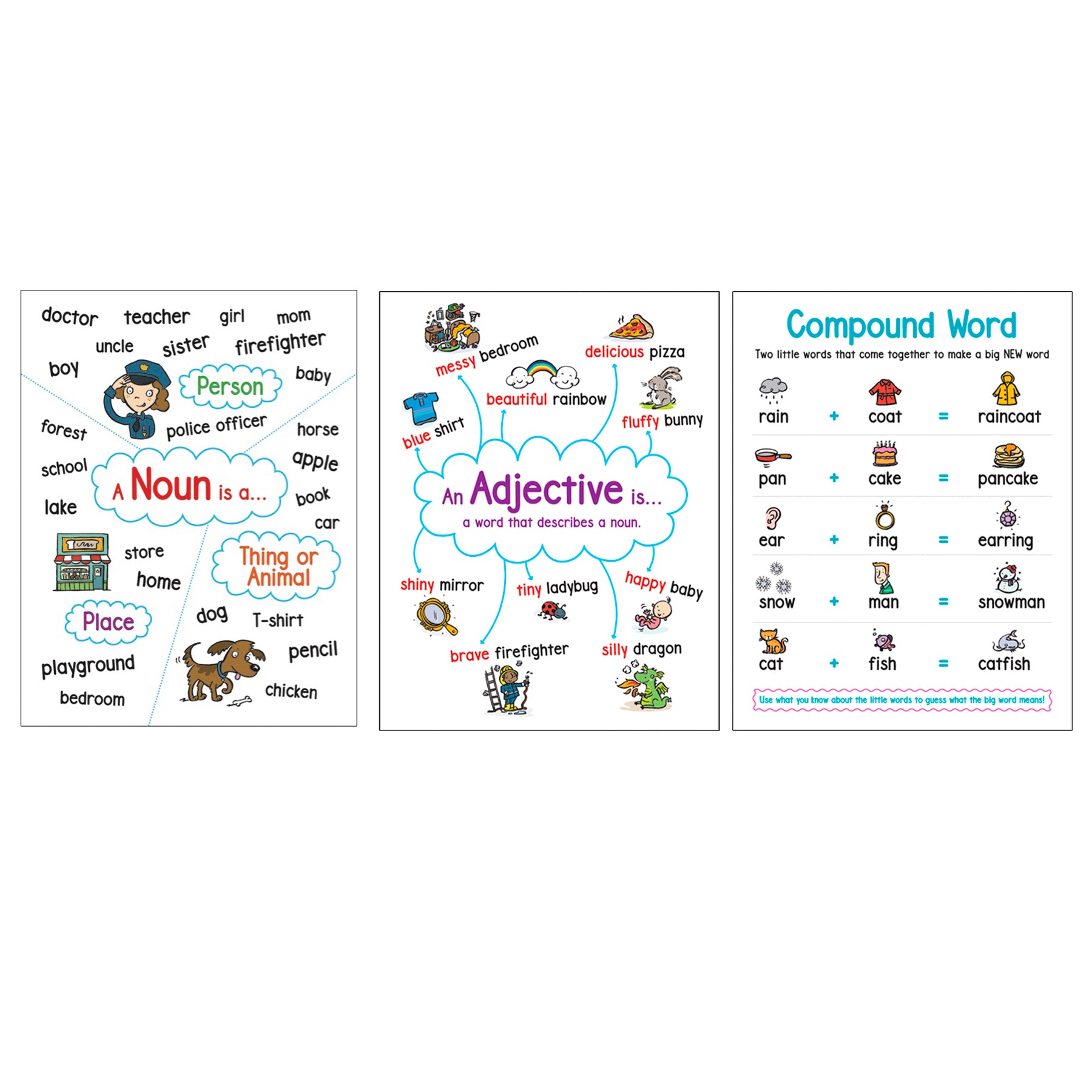 Support classroom learning with this cute series of anchor charts on 6 essential language arts topics. Features a reproducible version on the reverse so each student can have one for reference. A handy time-saver for busy teachers!
