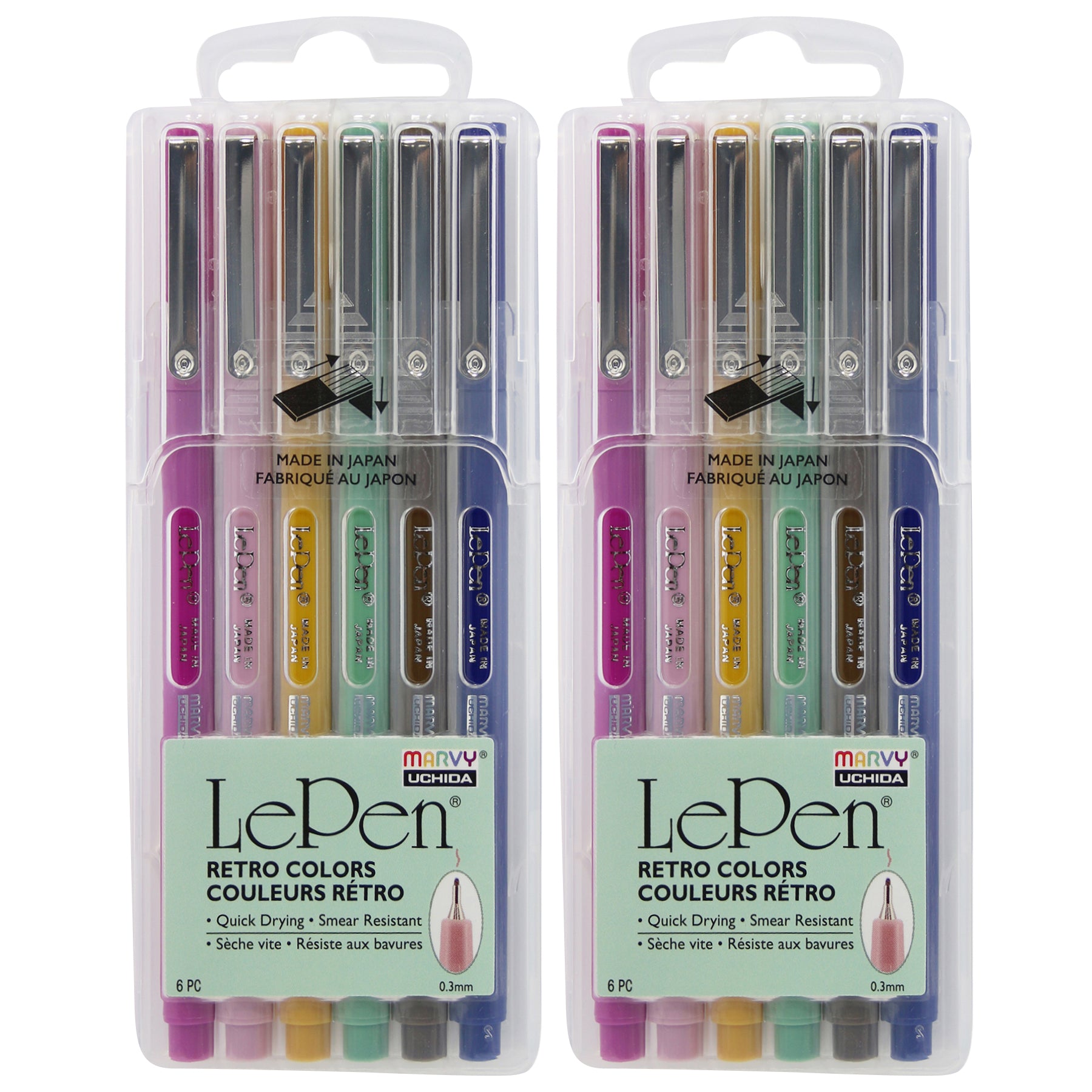 LePen® Micro-Fine Point Pen, Retro, 6 Per Pack, 2 Packs
