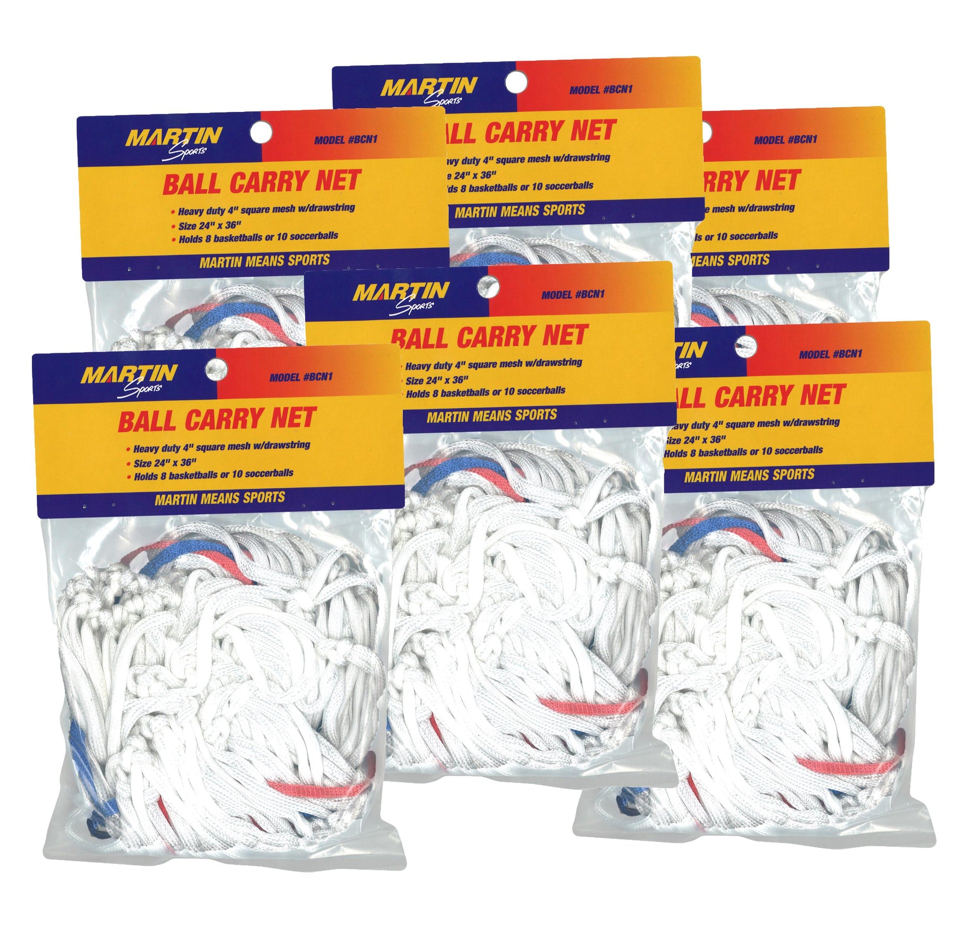 Heavy duty 4" mesh with drawstring, holds 8 basketballs or 12 volleyballs. Measures 24" x 36". Balls sold separately. Sold as a pack of 6 ball bags.
