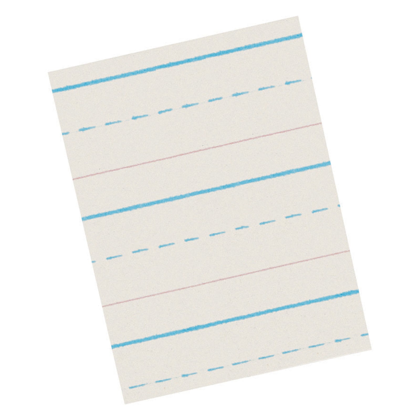 Clean White newsprint paper printed on both sides with a red baseline and a dotted blue midline, making it easy for students to find the headline quickly and easily. It's also great for tracking students' handwriting progress over time, and helps build a solid foundation for students to write legibly and communicate effectively through writing. Ruling conforms to D'Nealian™ handwriting program. Package contains 500 sheets. Measures 11" x 8.5". Recyclable. Sold as 3 packs for a total of 1500 sheets.