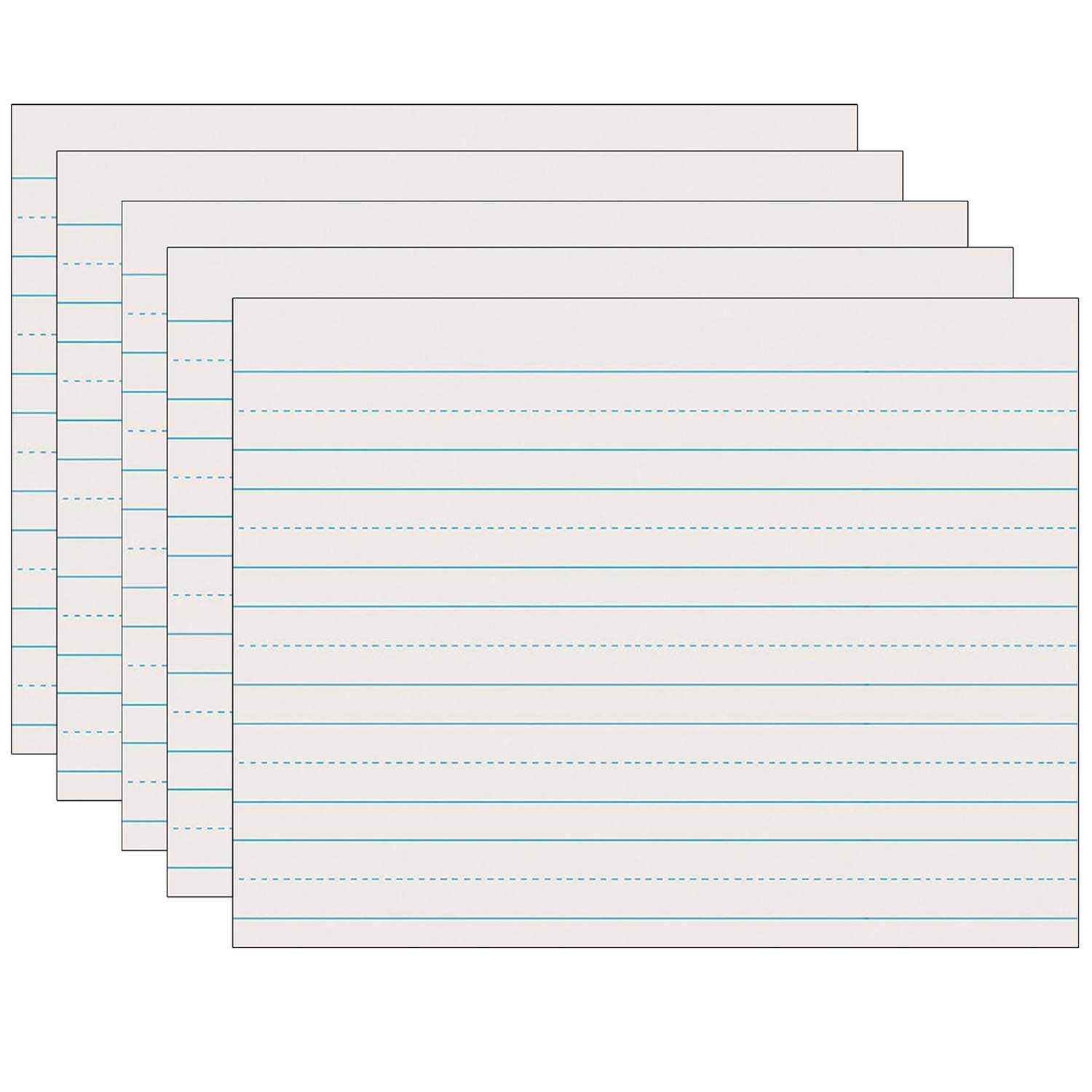 Clean White newsprint has a light blue ruling on both sides. Dotted midline serves as a guide for controlled writing, and skip space allows room for letter descenders, making it great for handwriting practice and tracking students' handwriting progress over time. Helps to build a solid foundation for students to write legibly and communicate effectively through writing. Package contains 500 sheets. Measures 11" x 8-1/2". Recyclable. Sold as 5 packs for a total of 2500 sheets.