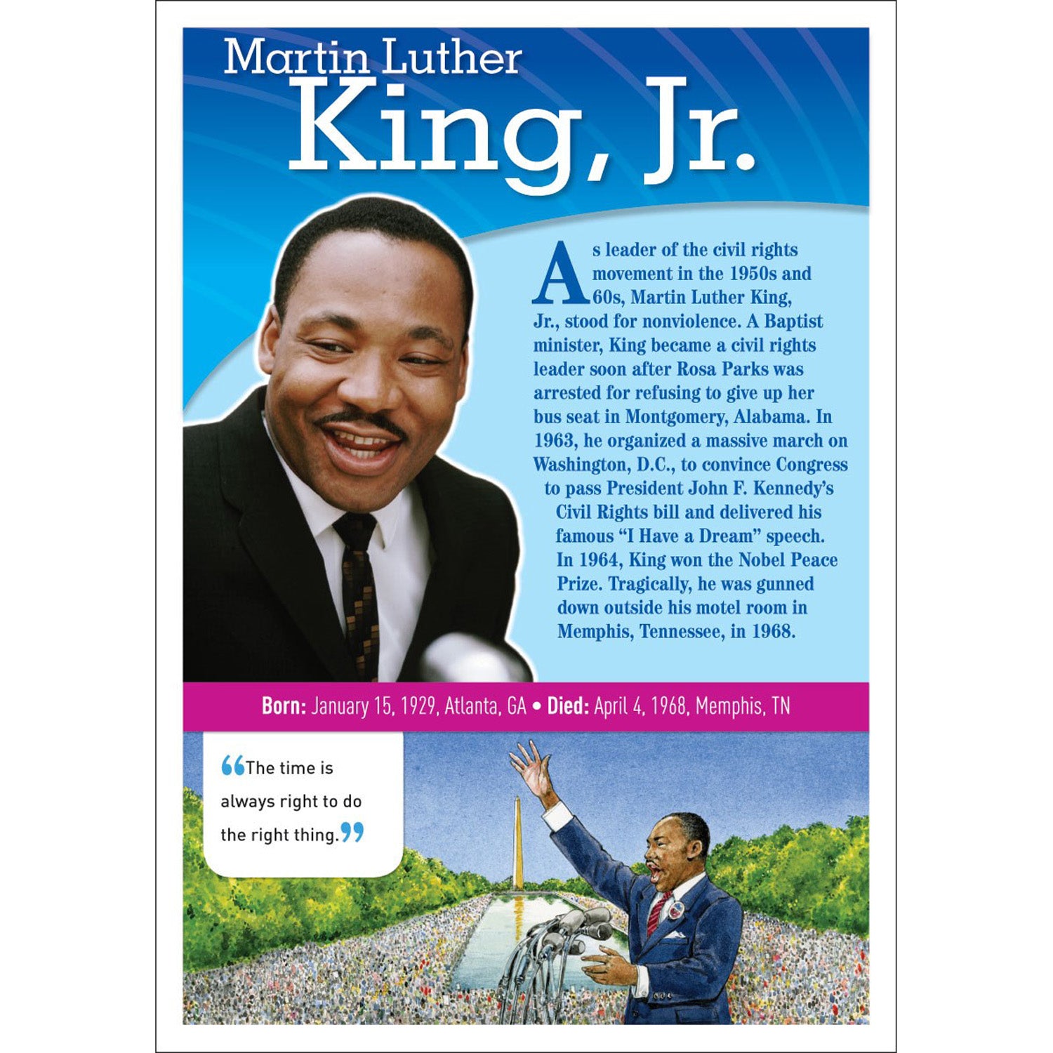 Celebrate the achievements of these 12 notable African Americans who changed history and paved the way to our diverse yet more unified nation. Each mini-poster includes a large photograph, a full-color illustration, a brief biography, and a quotation from each person. Also includes an activity guide.