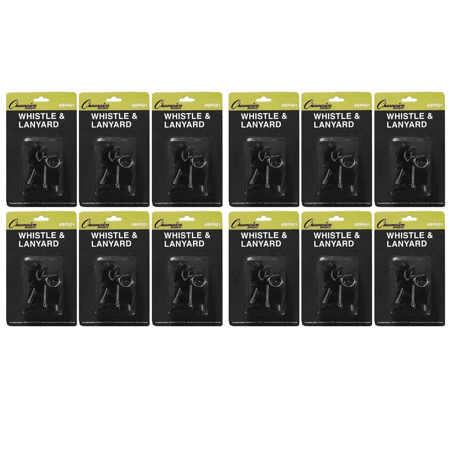 The Champion Sports Whistle and Lanyard Combo includes a heavy-duty nylon lanyard with a medium weight plastic whistle. Ideal for coaches and teachers, this convenient combo features a metal J-hook for quick and easy attachment. Sold as a pack of 12 whistle and lanyard combos.