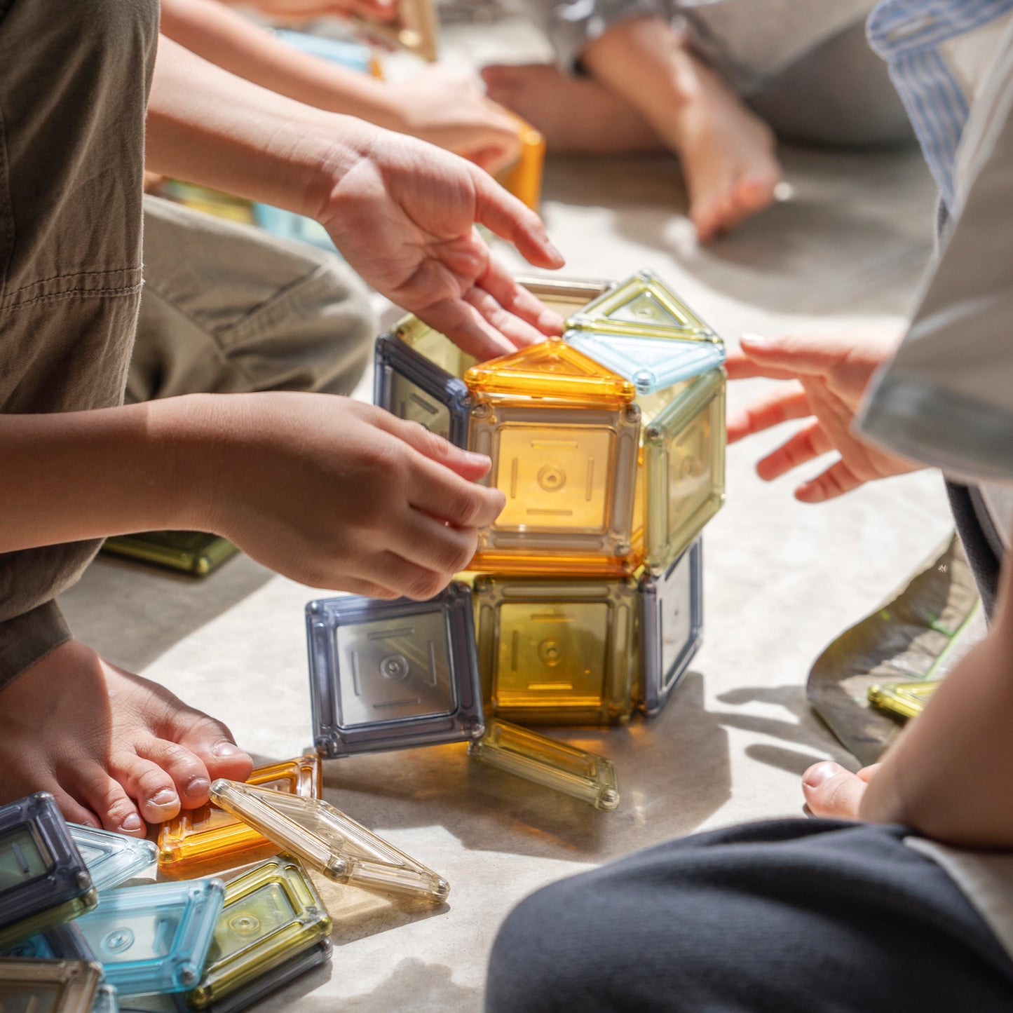 i : Open-ended magnetic construction toy integrated with light play, natural play and loose parts theory
