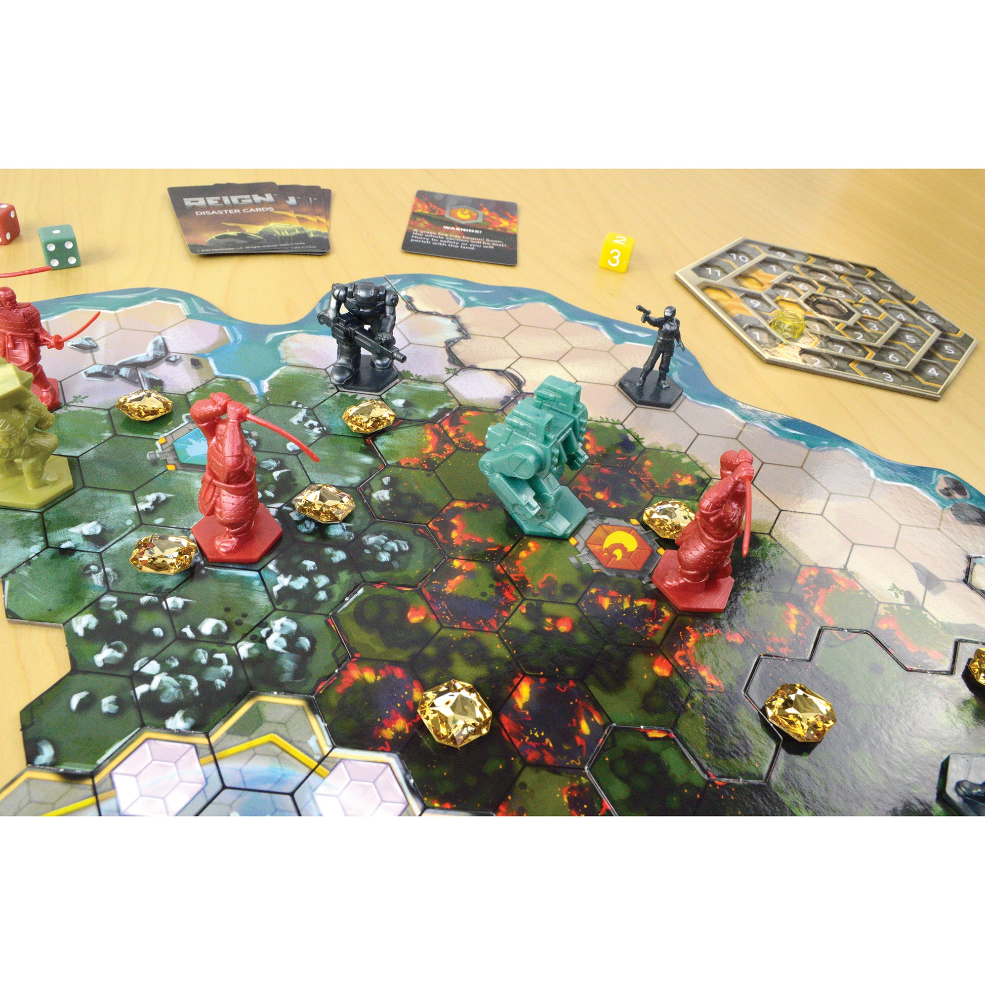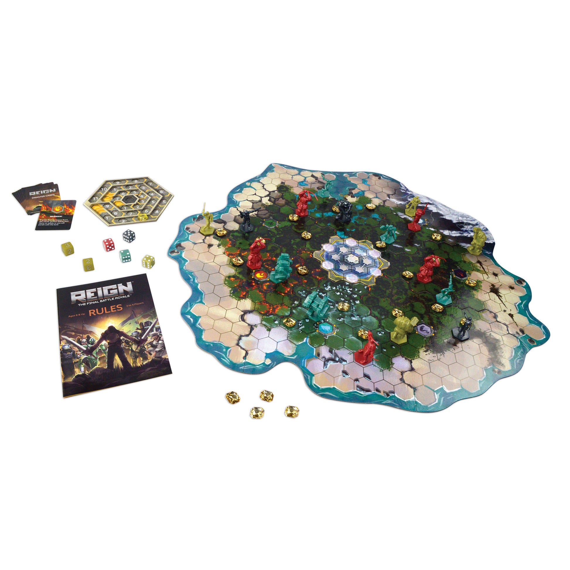 The Final Battle Royale™ Which player will be left standing as the victor?! Four factions of warriors battle to survive on a doomed land that will be destroyed piece by piece, taking its occupants with it. You must strategize to survive—by fleeing, fighting or sacrificing your weakest members—whatever you must do to be the last one left standing when the land around you has been annihilated. For 2 to 4 players.