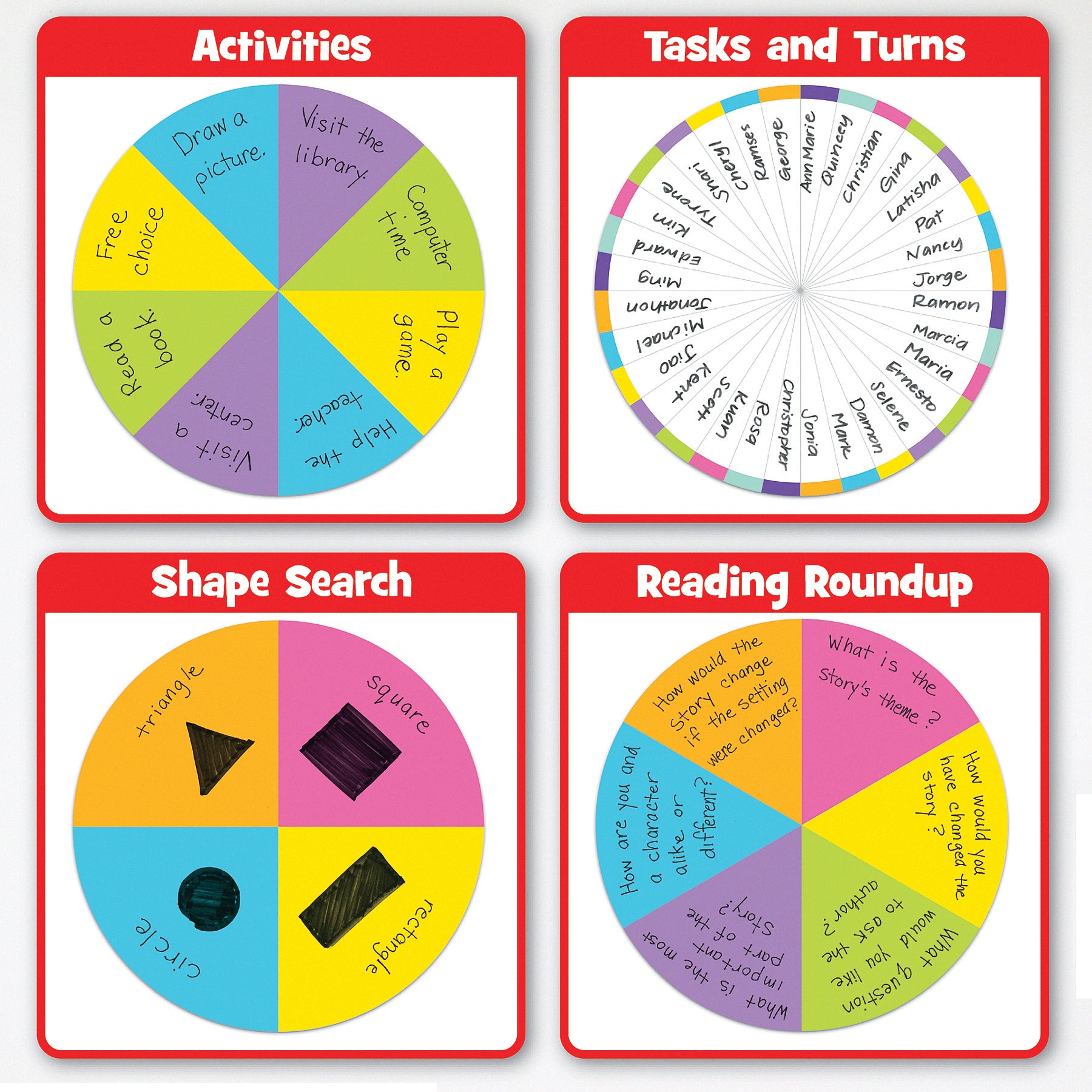 i : Place the spinner on your whiteboard, choose a template, and use dry-erase markers to create the games and activities you need!