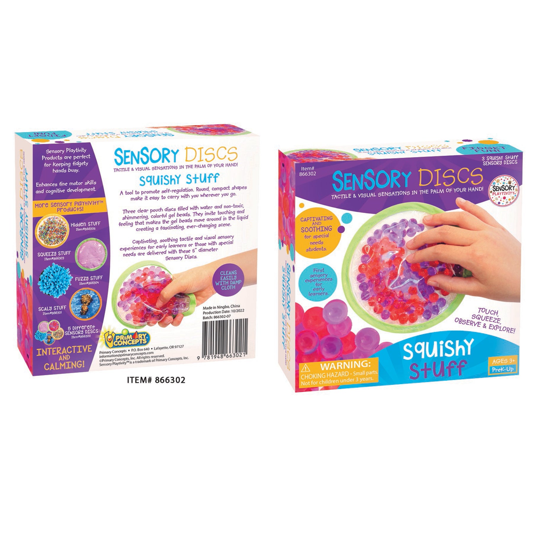 Captivating, soothing tactile and visual sensory experiences for early learners or those with special needs are delivered with these 5" diameter Sensory Discs. Also perfect for fidgety students, these discs are made for touching, squeezing, exploring and observing!