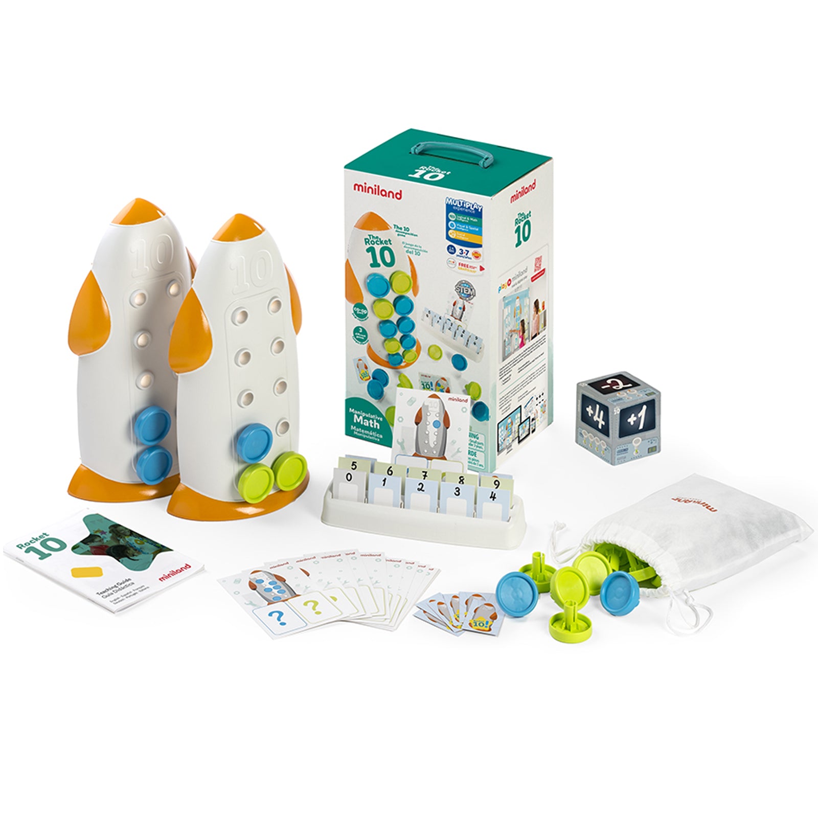 The Rocket 10 focuses on manipulative mathematics. This entertaining toy is a powerful teaching resource as a means of promoting the learning of the following basic mathematical concepts through manipulation and the game: working with pattern, number-quantity association, speed in counting, breaking down the number 10, an introduction to addition and subtraction, and learning even and odd numbers. For ages: 3 to 7 years.