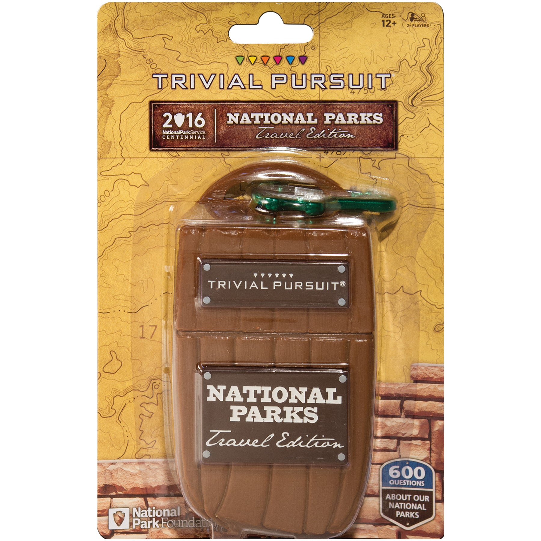 Test your knowledge of America's National Parks with TRIVIAL PURSUIT®: National Parks Travel Edition. Trivia questions from 100 years of National Park history will challenge National Parks travelers, U.S. History buffs, students and families. Roll the custom die to pick from six categories: Natural Wonders, Battlefields and Historic Sites, Cultural Heritage, Science and Nature, Wildlife and Wildcard. First player to collect 6 cards wins! Hook the handy travel case to your backpack and play anywhere, around the campfire or even on the hiking trail! For 2+ players ages 12 and up.