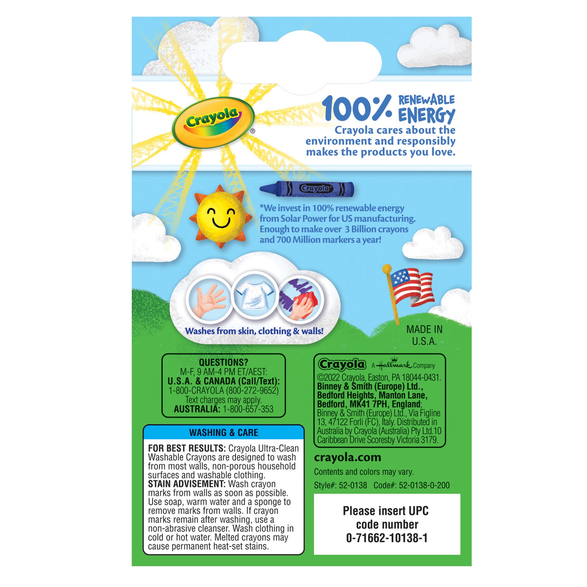 Great for use in the home or at school, Crayola Ultra-Clean washable crayons are an essential creative tool for kids. This pack of non-toxic crayons are specially formulated to wash clean from skin, clothing, and even painted walls. With classic colors and bright, fun shades, The Crayons inspire self-expression and imaginative play. Each pack includes 24 crayons. Sold as 6 packs for a total of 144 crayons.