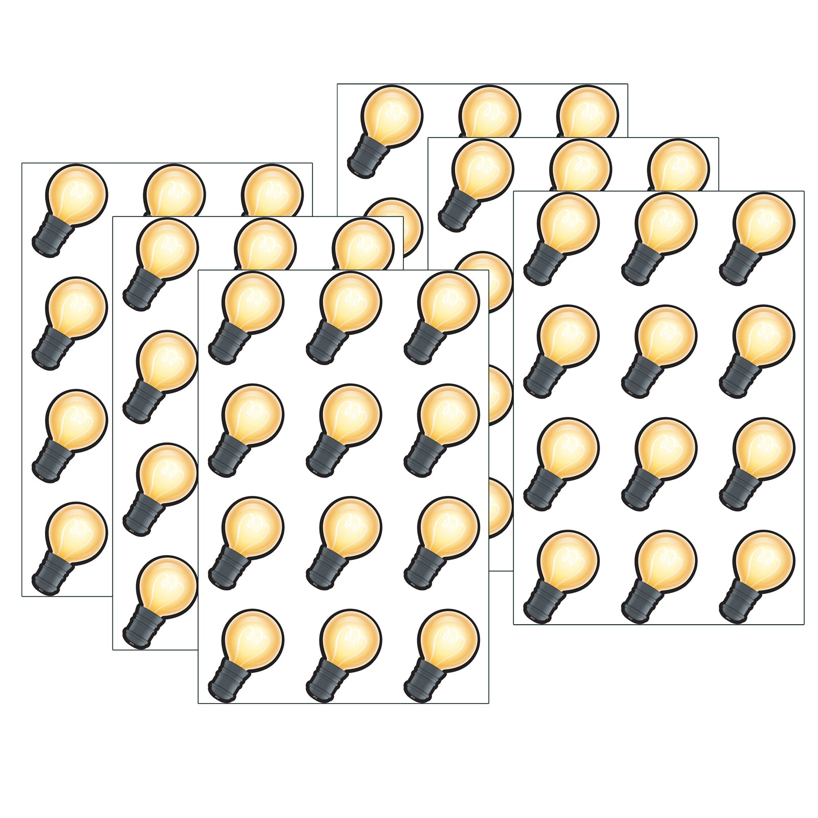Have fun decorating with these bright light bulb accents that measure about 2-5/8". Use them to accent displays, to fill in monthly calendars, or as pieces for learning games like sorting, patterning, and graphing. Each pack includes 36 pieces in 5 designs. Sold as 6 packs for a total of 216 pieces.